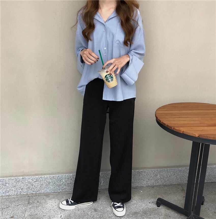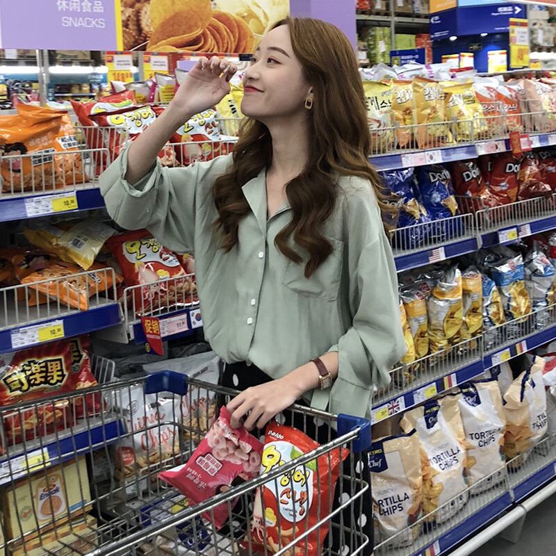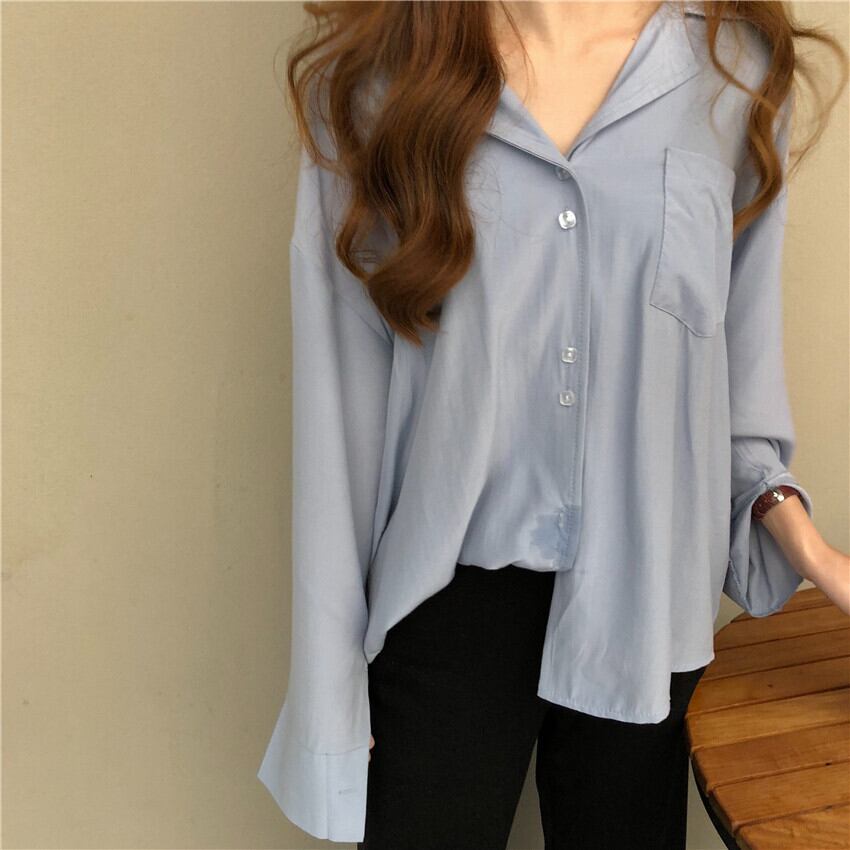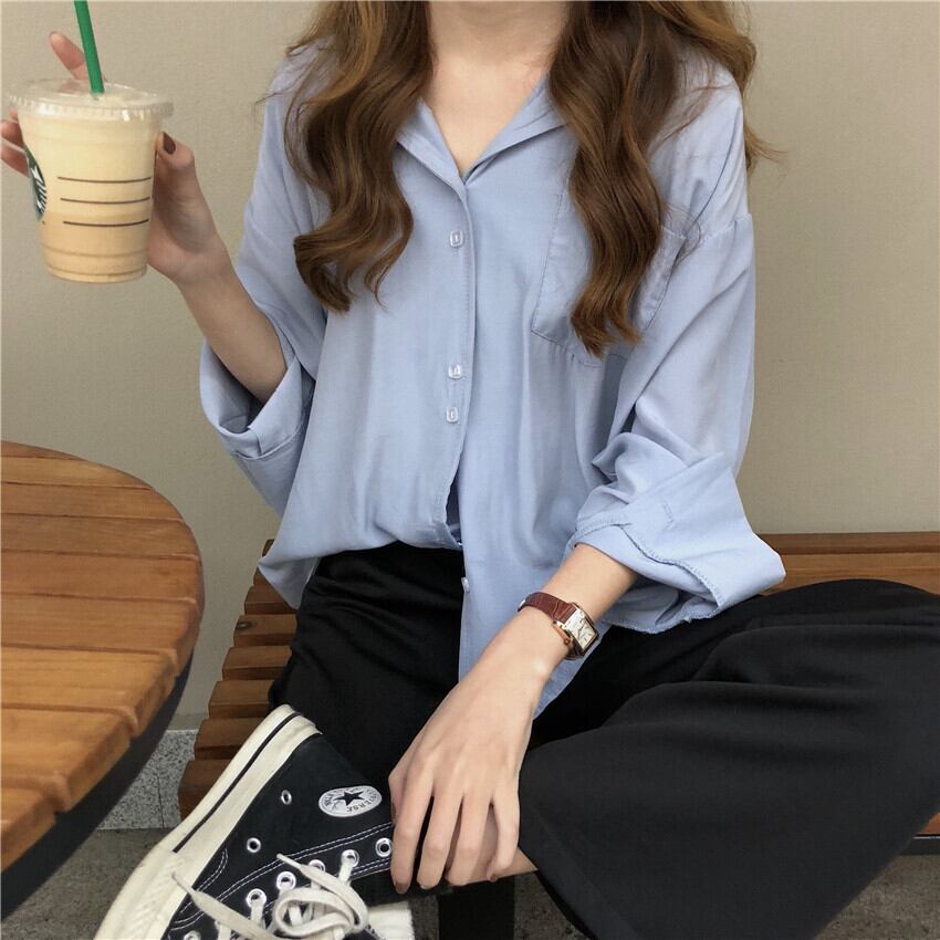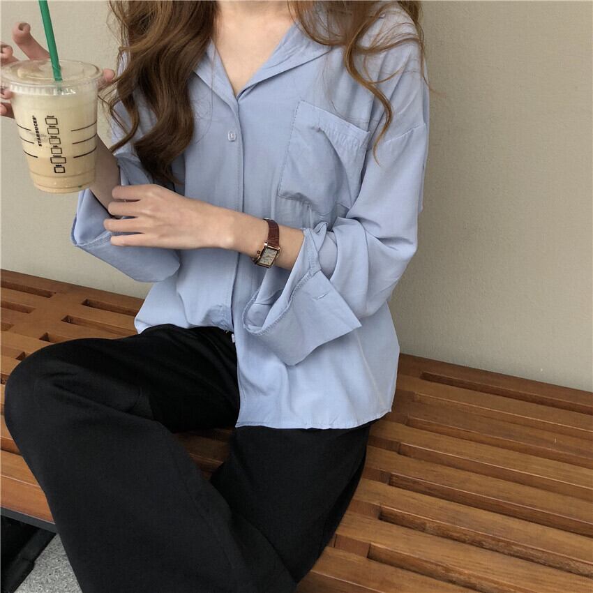 秋バージョン緩い無地長袖シャツ女性の怠惰なスタイル香港スタイルのレトロカジュアルオールマッチシャツトップトレンド misskkl52154304793