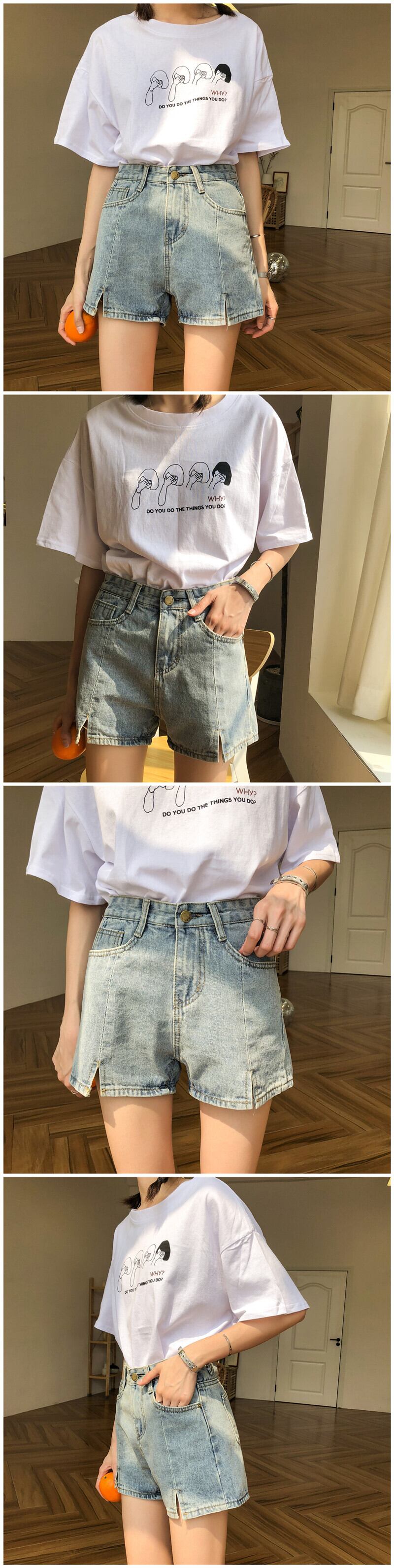 デニムショートパンツ女性秋スタイルストレート緩いハイウエスト痩身2020新しい灰色スーパー消防cecパンツins潮 misskkl48990340902