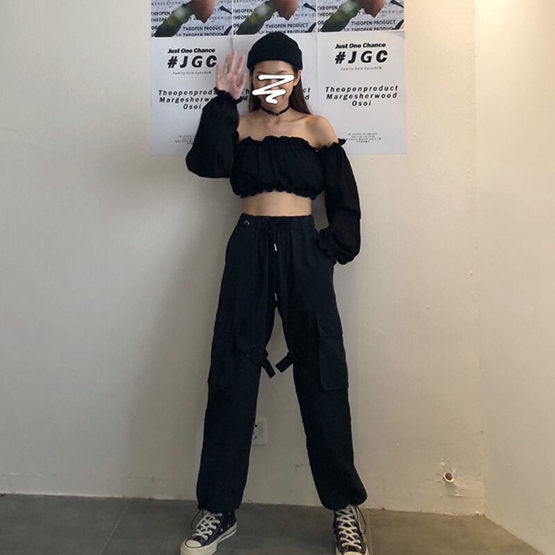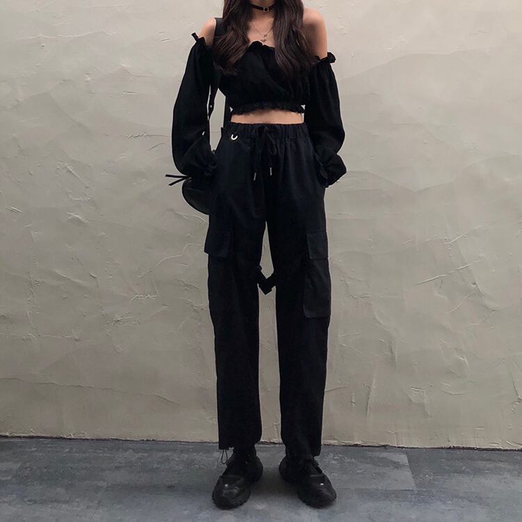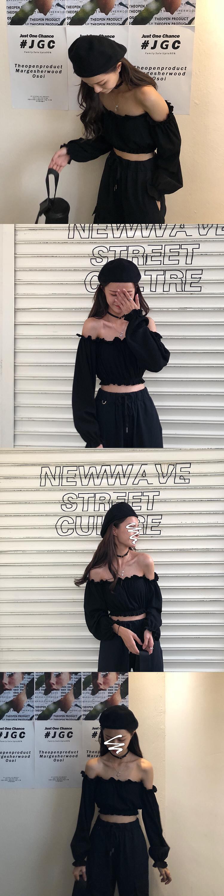 2020年春秋バージョンnew ins darkセクシーストラップレスワンラインネックスリムショートロングスリーブシャツレディース misskkl69036254498