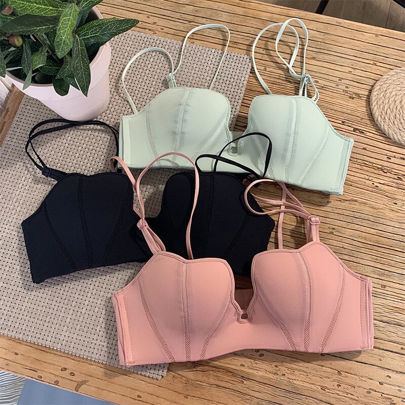 秋のスタイルのシェル側のスチールリングのないブラは、ブラのシームレスな小さな胸の下着のパンティーセットの中に集まりました misskkl66189539684