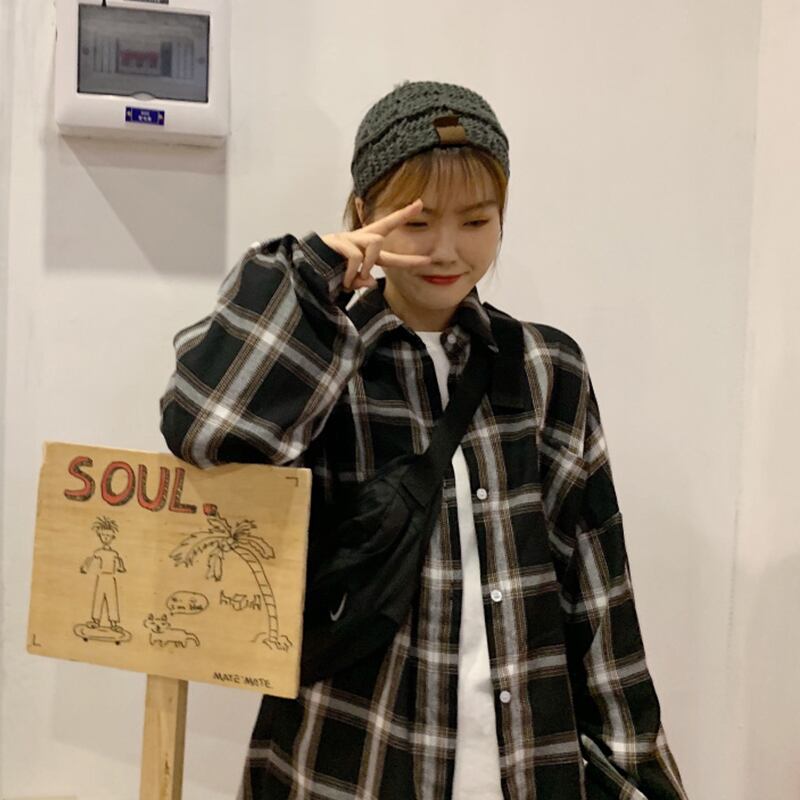 2020秋の服の新しいバージョンの緩い野生のレトロな香港スタイルのジャケットの服の格子縞のシャツ長袖シャツの女性 misskkl80039797320