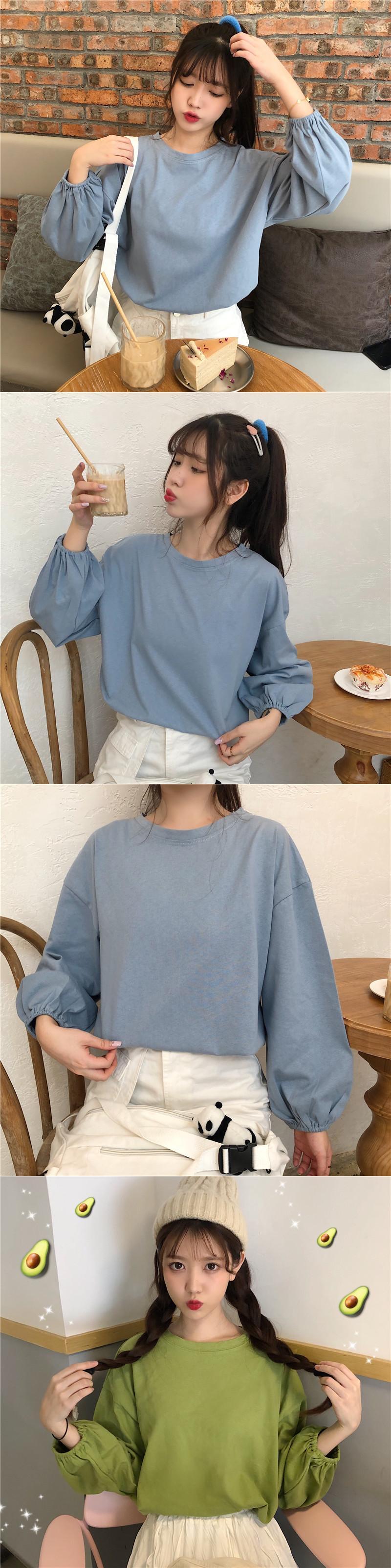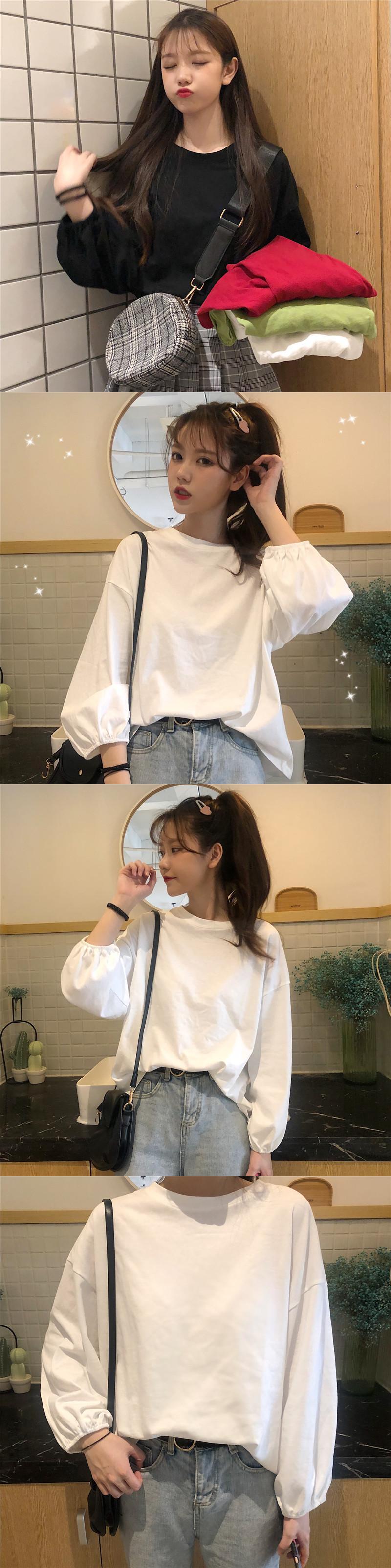 2020年秋新作ルーズラウンドネックワイルドランタンスリーブホワイトトップ長袖Tシャツ女子学生イン misskkl32880547855