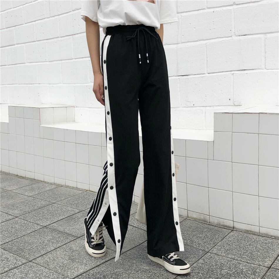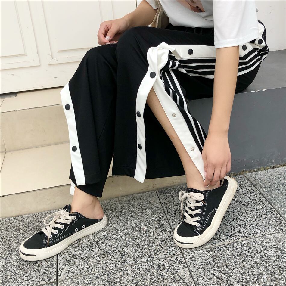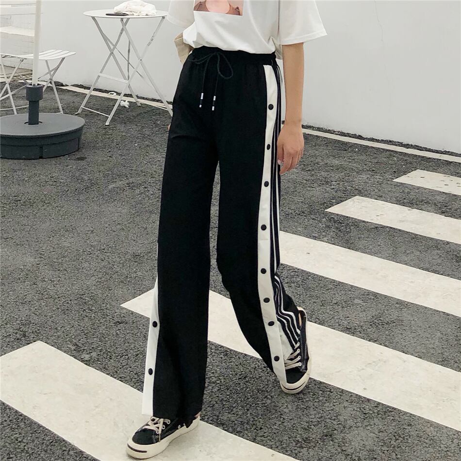 スプリングオータムパンツ ルーズスリットハイウェストカジュアルロング 春物 秋物 misskkl75027382497