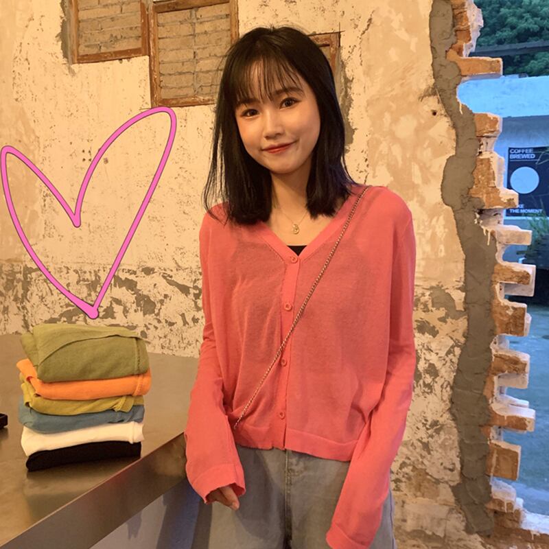 2020秋の新しい怠惰な風ルーズショートキャンディーカラーブラウスアイスシルクシン長袖日焼け止めセーター女性 misskkl29299800863