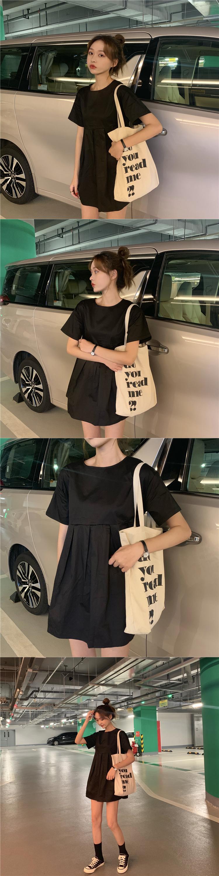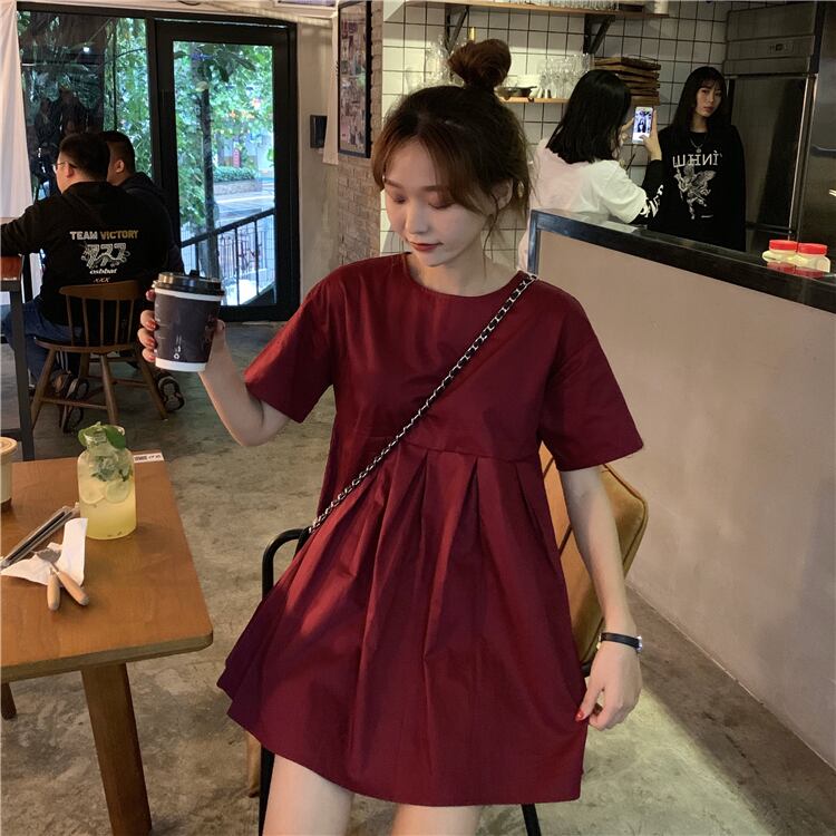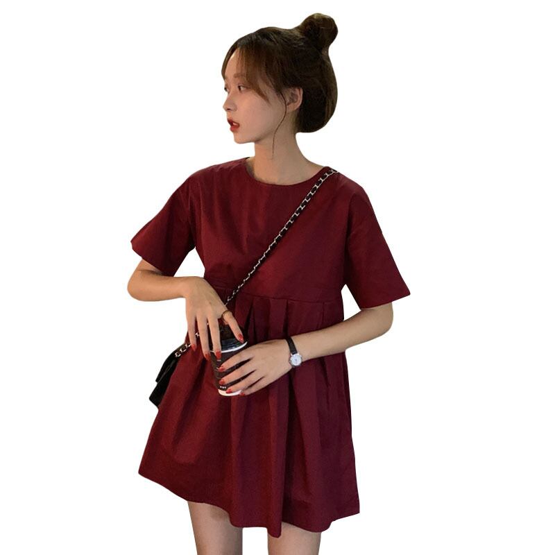 2019新しい夏のシーズンの気質は薄い半袖のドレスの女性のネット赤イン無地ミドル丈スカートでした misskkl50786293680