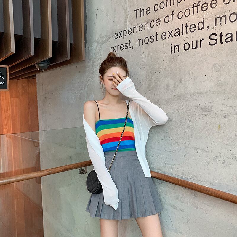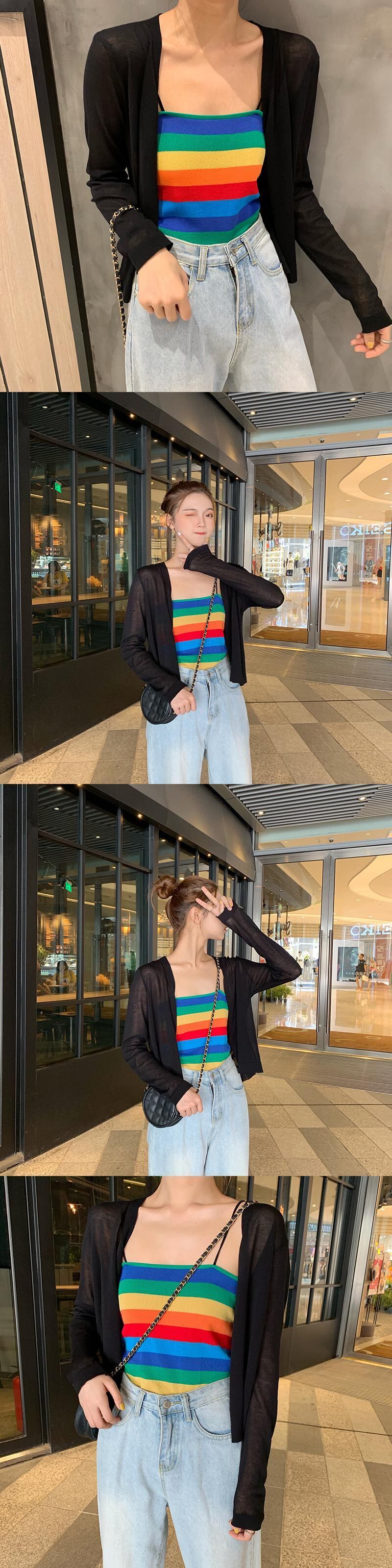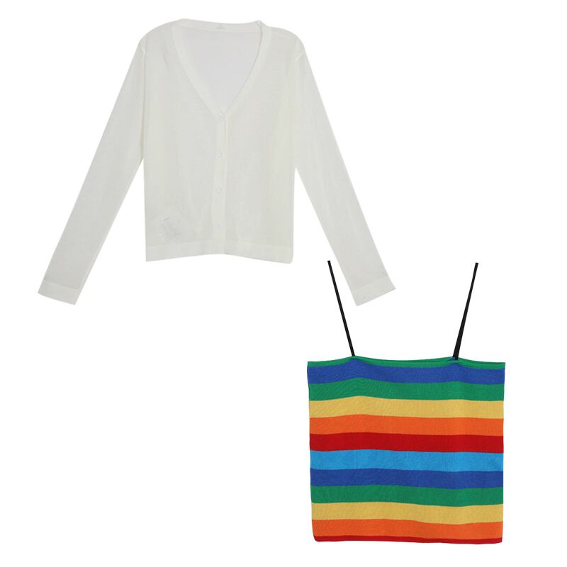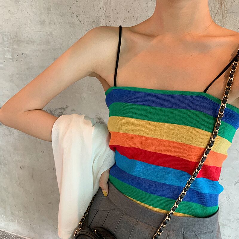 2020夏の新ヒュナ風レインボーストライプトップススリムフィットニットノースリーブベストアウターウェアスリングメス misskkl32037296133