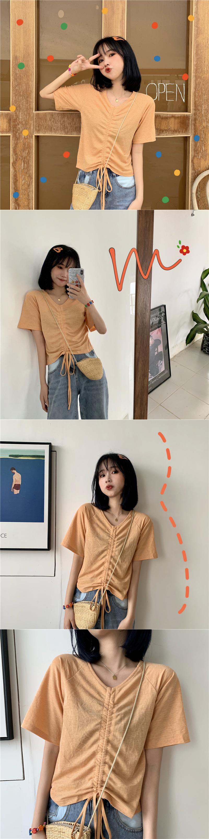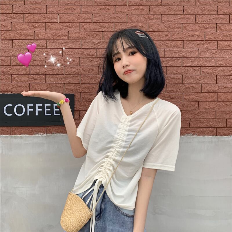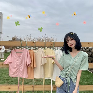 ドローストリングの短いパラグラフの夏バージョンの薄い半袖Tシャツのカジュアルな女性の2019年の新しい学生ニッチトップスins潮 misskkl95104005398