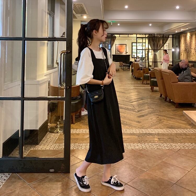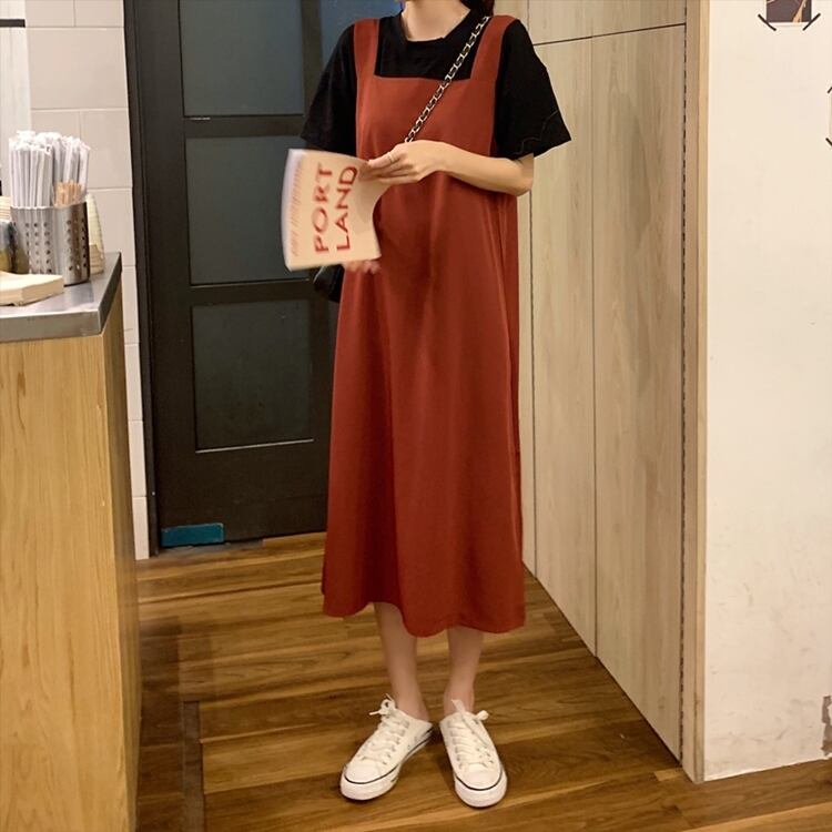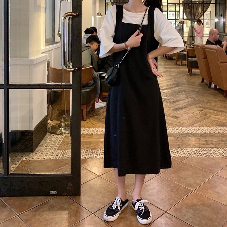 夏のスカート緩い長いサスペンダースカート女性2019膝丈ロングスカートドレス新しいミッドレングススカート misskkl47334939283