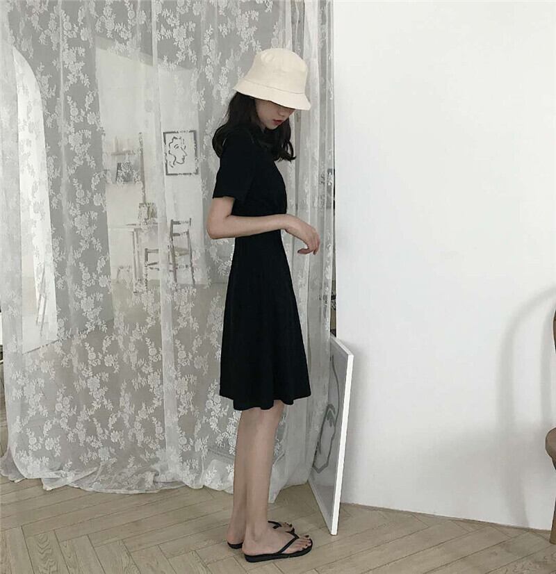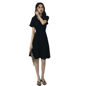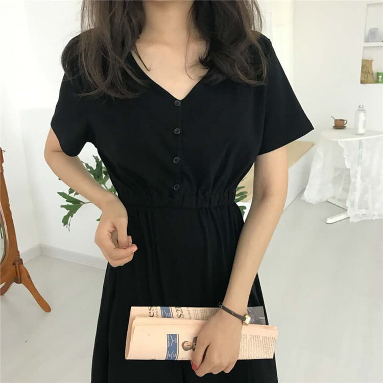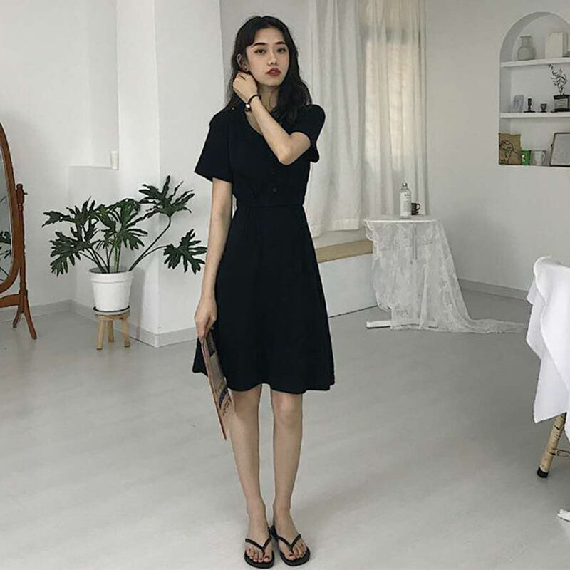 夏の女性のヘプバーンスタイルウエスト小さな黒いドレスロングスカート女性スリムスリムVネックAラインドレス潮スカート misskkl1521019704