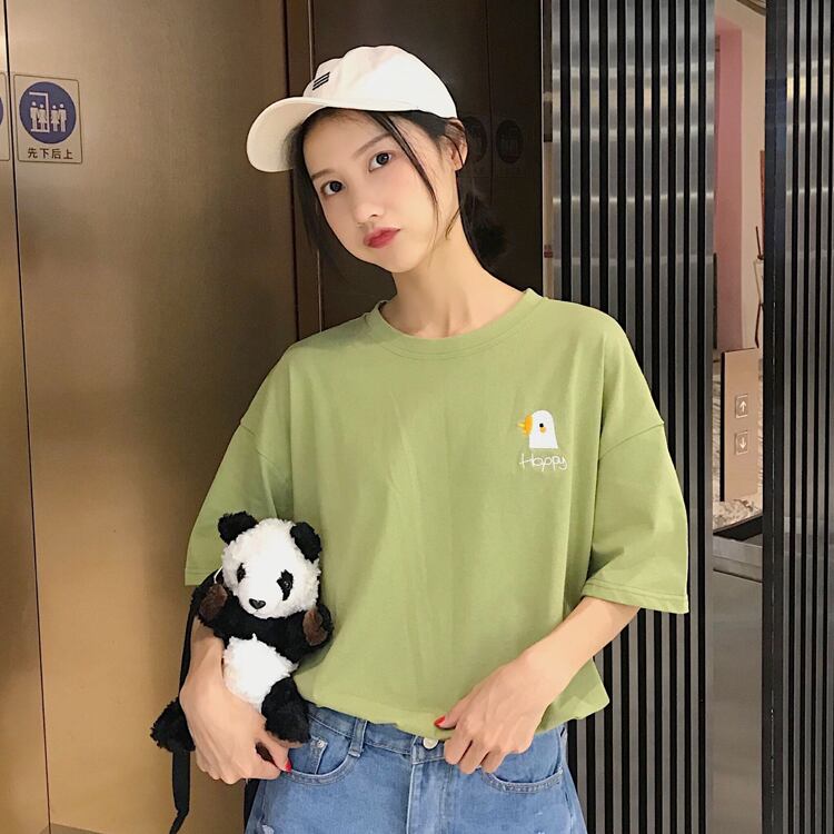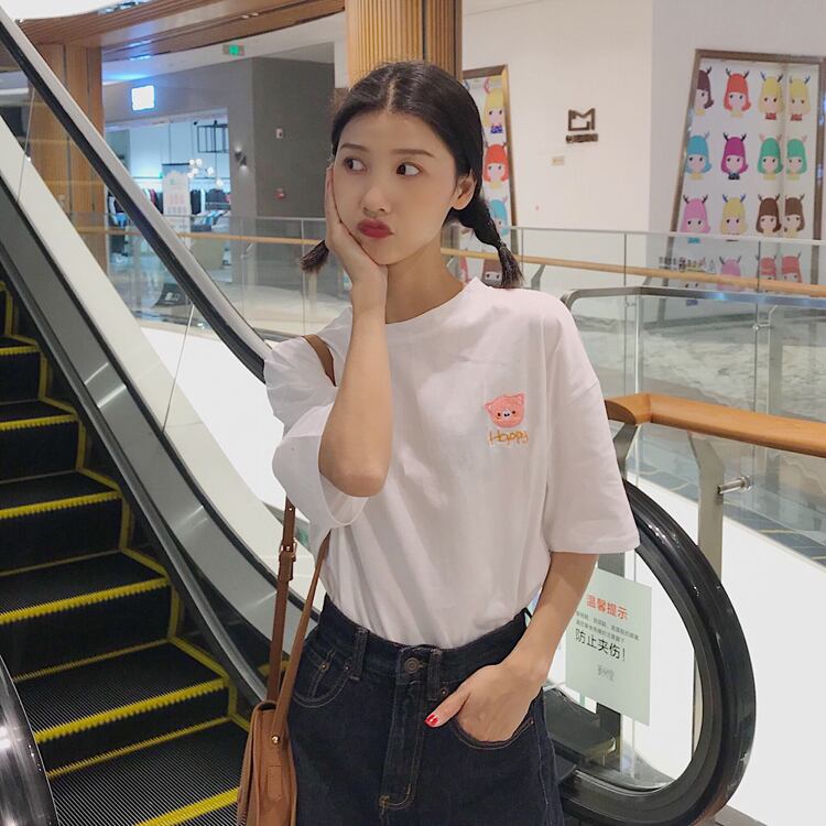 夏の漫画のかわいい刺繍の半袖Tシャツの女性の2019年の新しい学生の半袖トップ緩いイン潮 misskkl47298138266