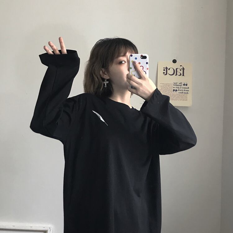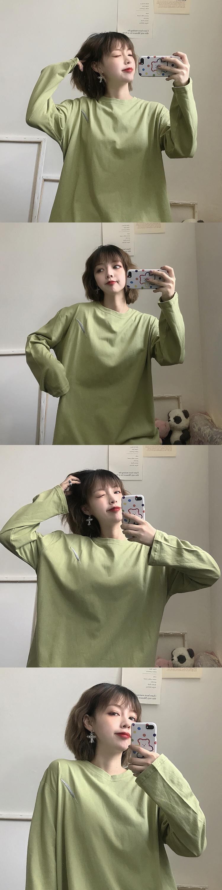 スプリングオータムレッドルーズ薄手ソリッド カラートップス 刺繍Tシャツ レディース ロング 春物 秋物 ソリッドカラー misskkl66240099291