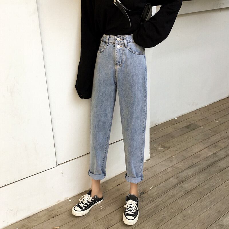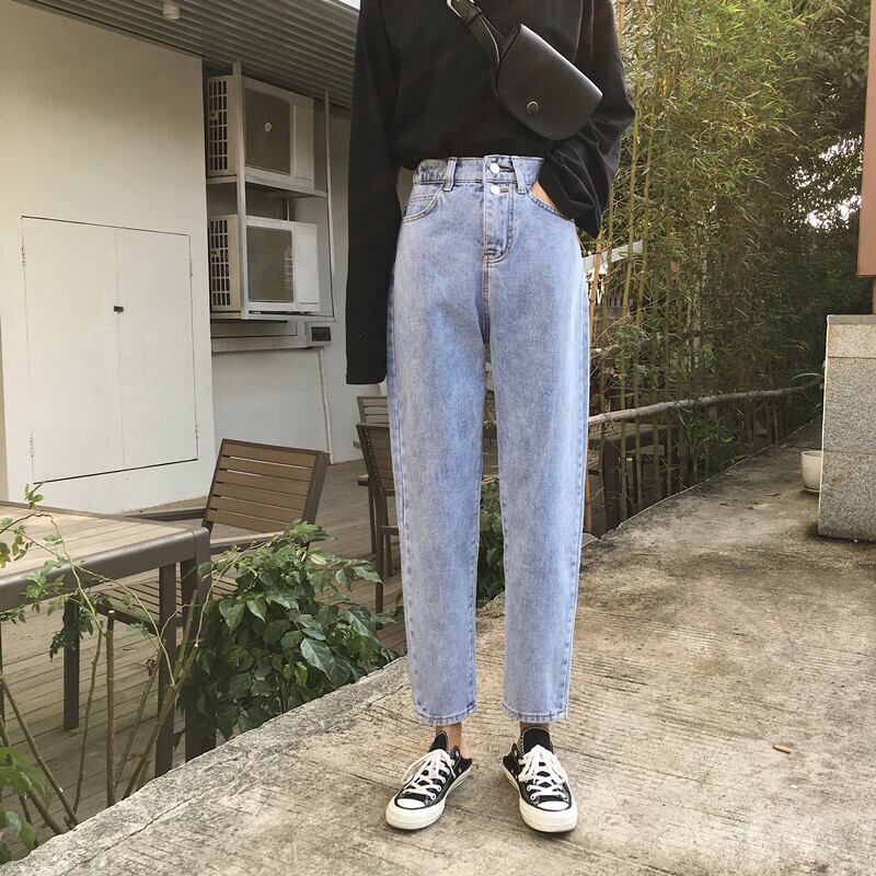 2020春と秋の新しい弾性ハイウエストストレートパンツ緩いシックな明るい色のパンツデニムパンツ女子学生 misskkl71062808073