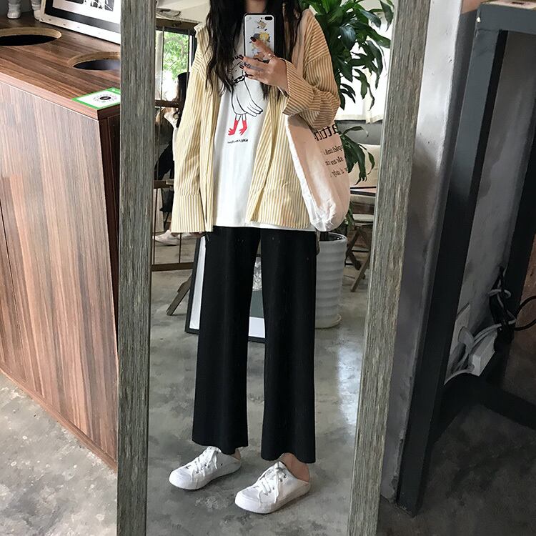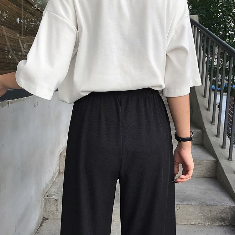 黒のパンツレディース2020新しい春ワイドレッグパンツ、ハイウエスト、薄い、すべての一致のドレープストレートカジュアルルーズスーツパンツ misskkl95218231317