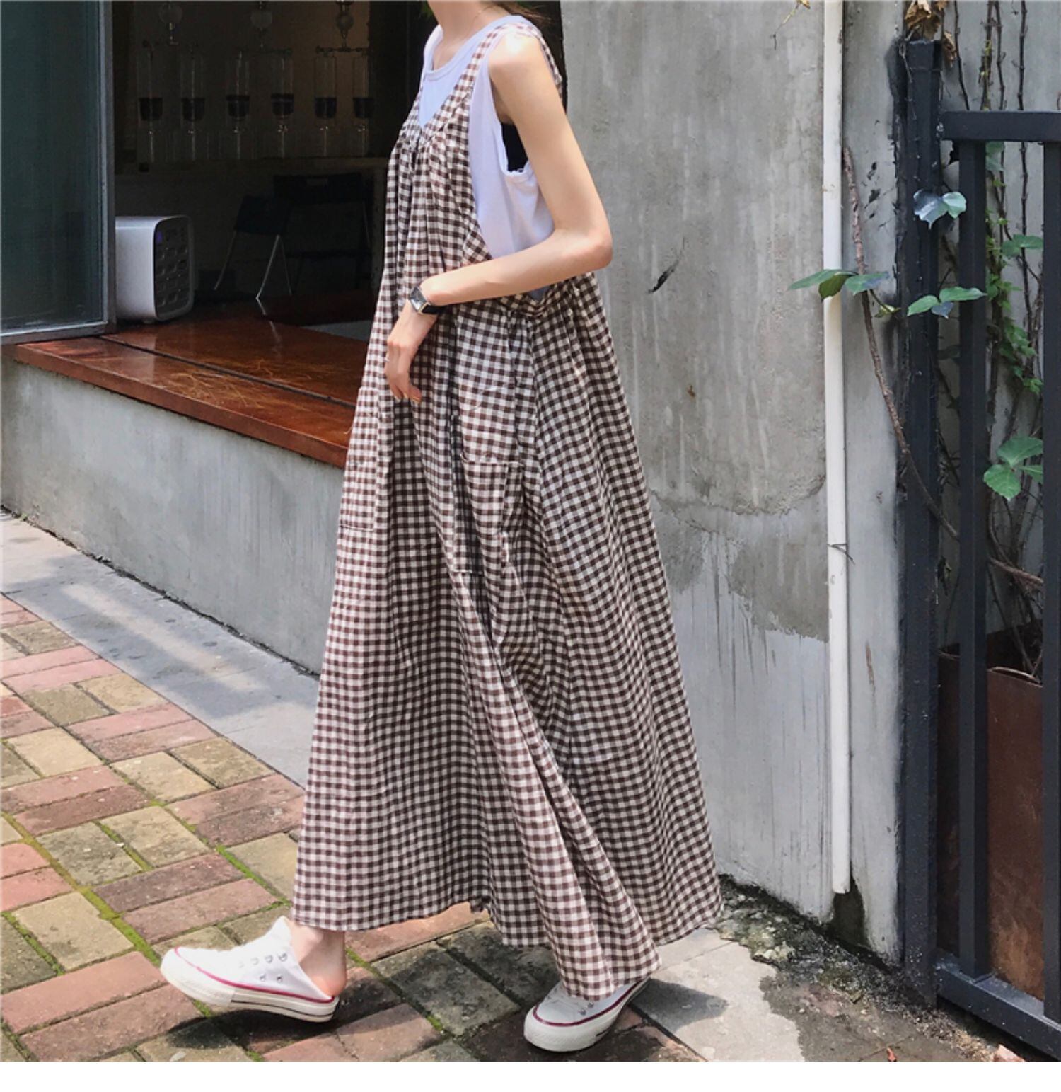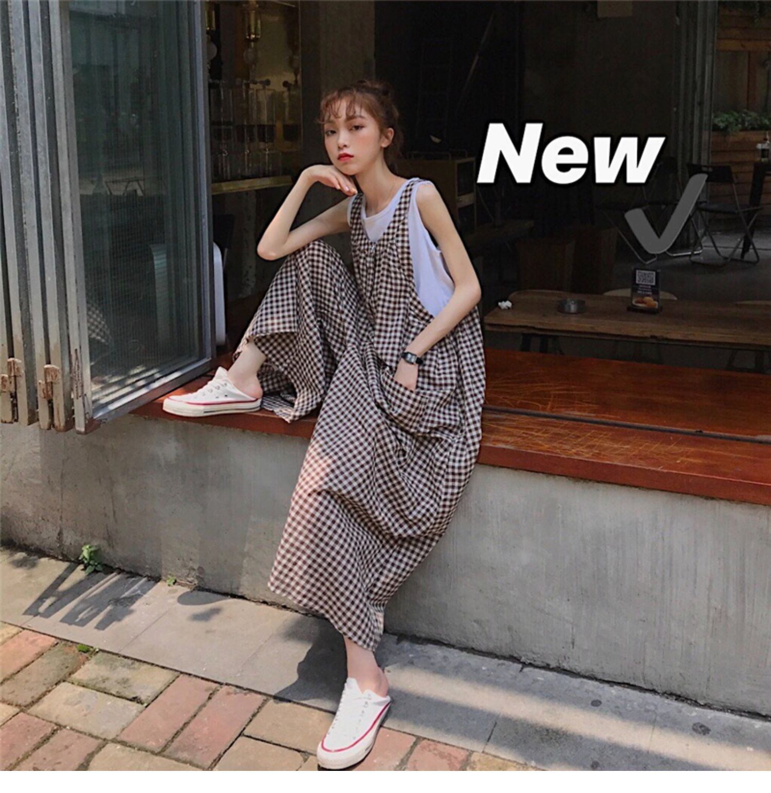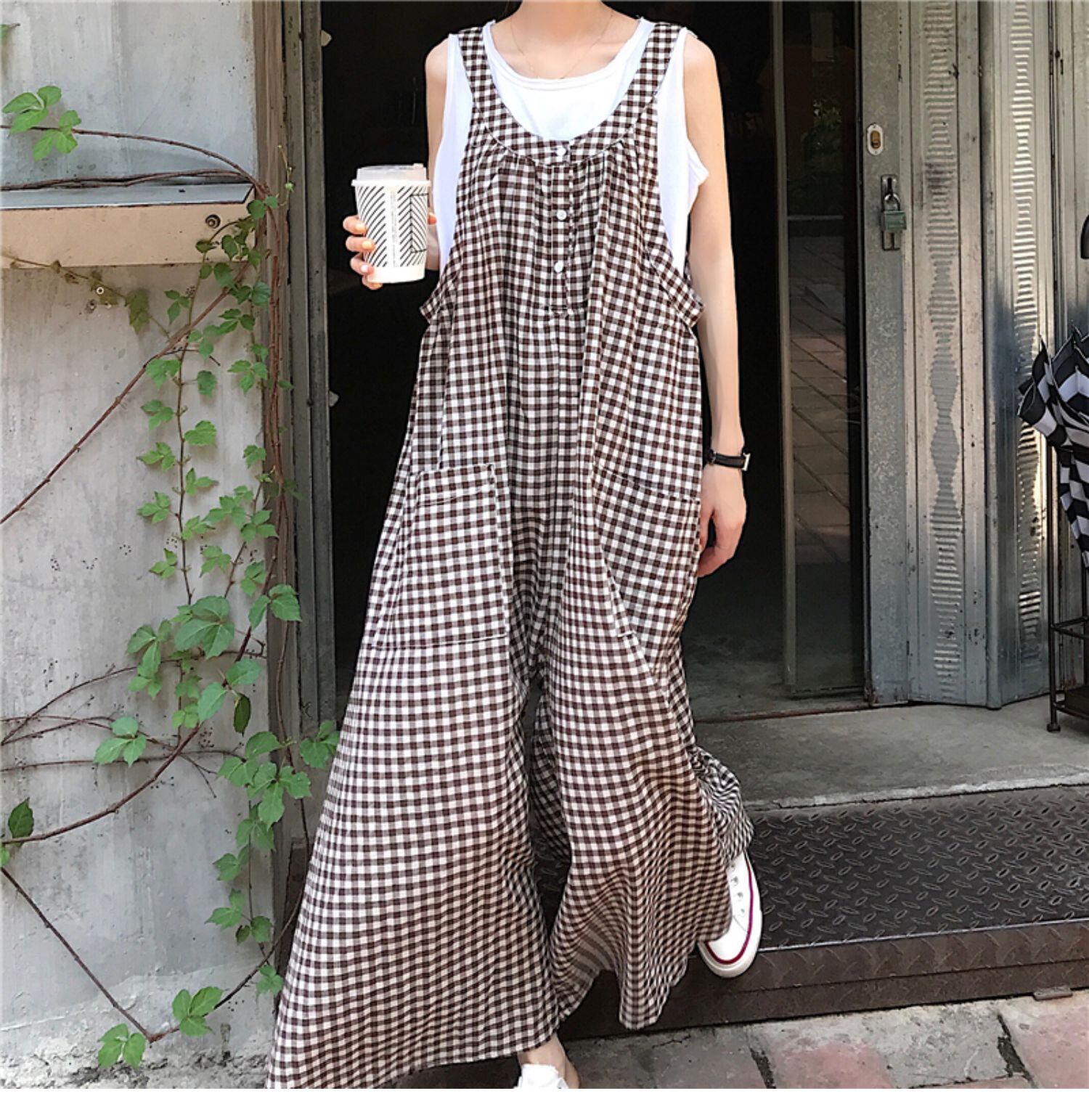 2019秋の新バージョン緩いハイウエストワイドレッグオーバーオールチェック柄ジャンプスーツカジュアル年齢削減パンツ女性 misskkl31382776948