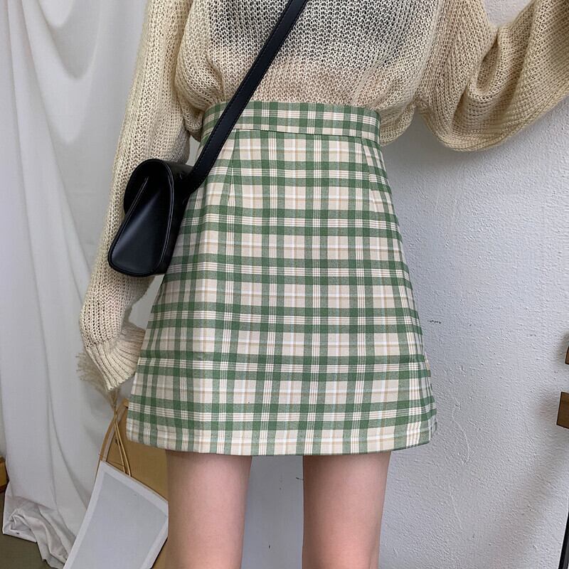 2020年春夏新作レトロ香港フレーバーハイウエストbmチェック柄スカートAラインパッケージヒップスカート女子学生スカート秋 misskkl9694250195