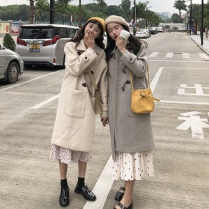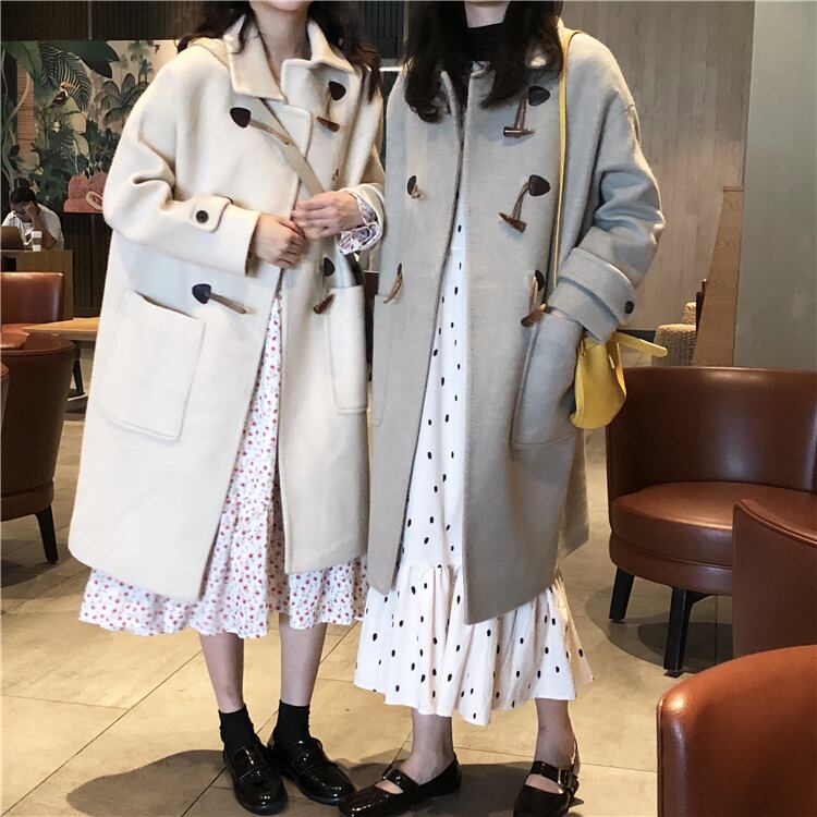 2020年春秋新作フレンチレトロホーンバックルルーズミドル丈ウールコートレディース長袖ウールコート misskkl63163079734