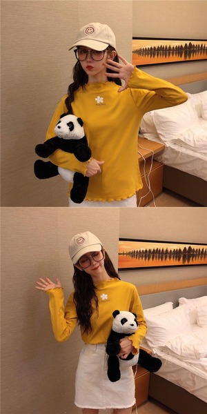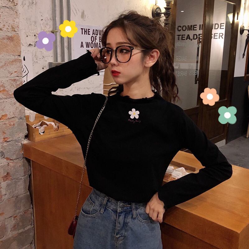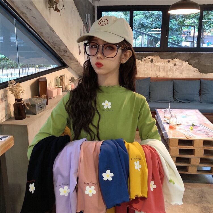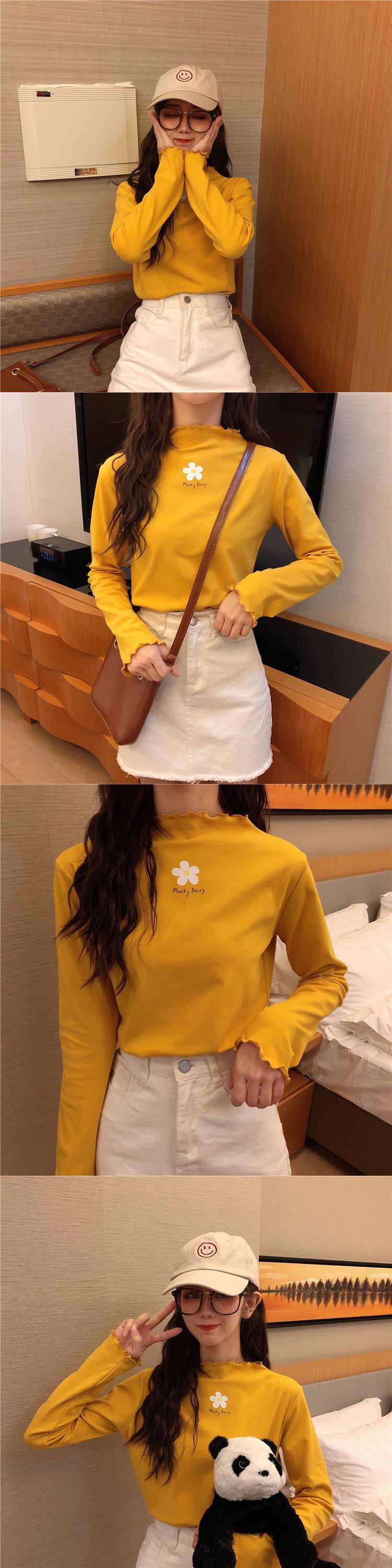 春秋バージョン2020ヒョナスタイルスリムハーフネックブラックトップ長袖Tシャツレディース misskkl49492235372