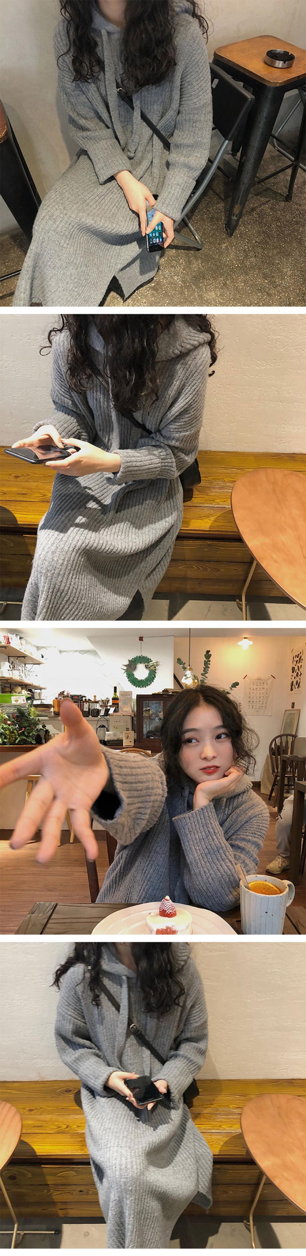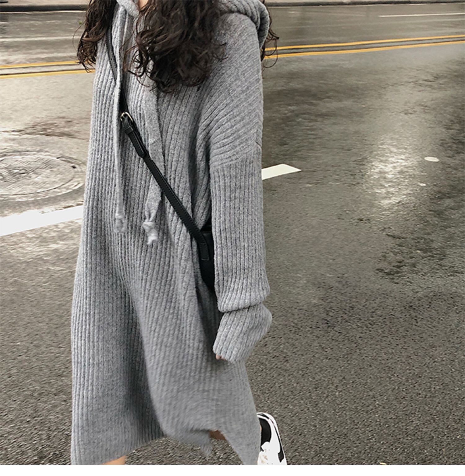 春と秋バージョン2020新しいルーズミドル丈フード付き黒セータードレス膝上女性の長袖ニットドレス misskkl31422598211