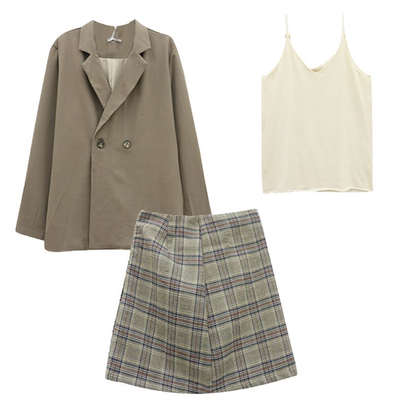 2020年春秋新作レトロ香港スタイルルーズ長袖ブレザージャケット女子学生ファッションツーピーススーツ misskkl80876880379