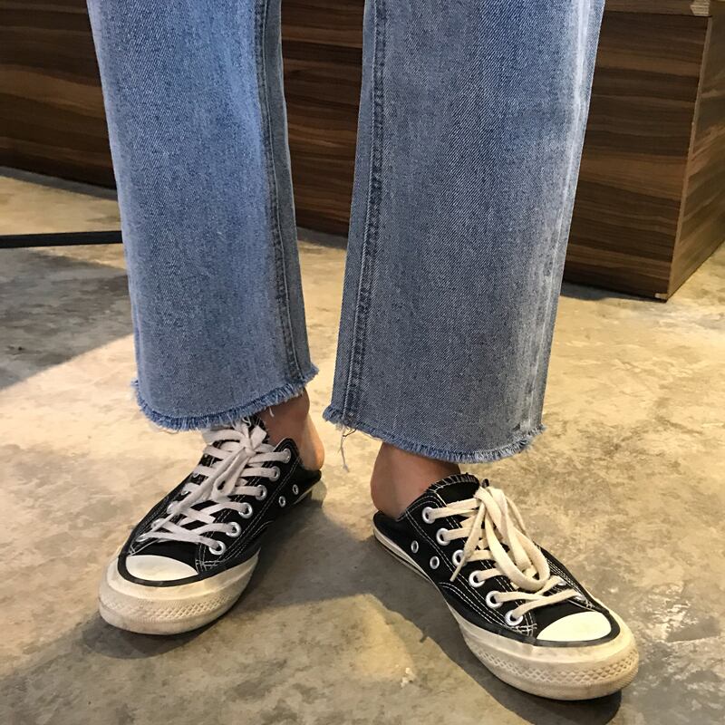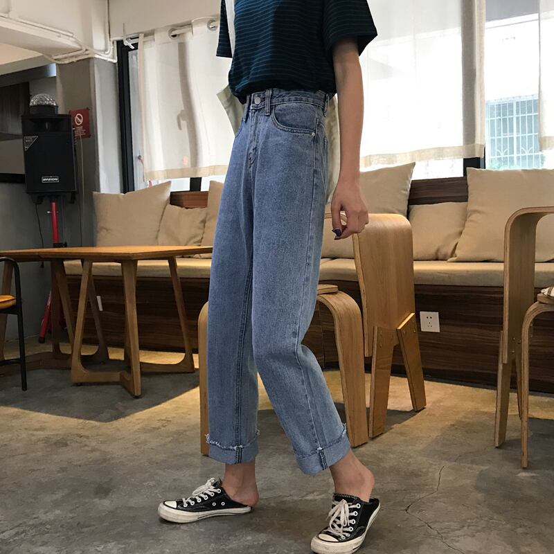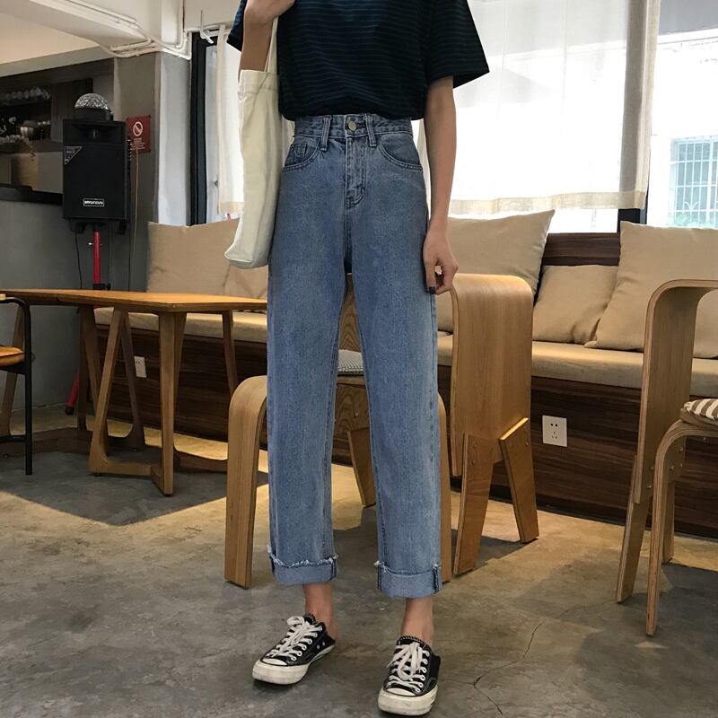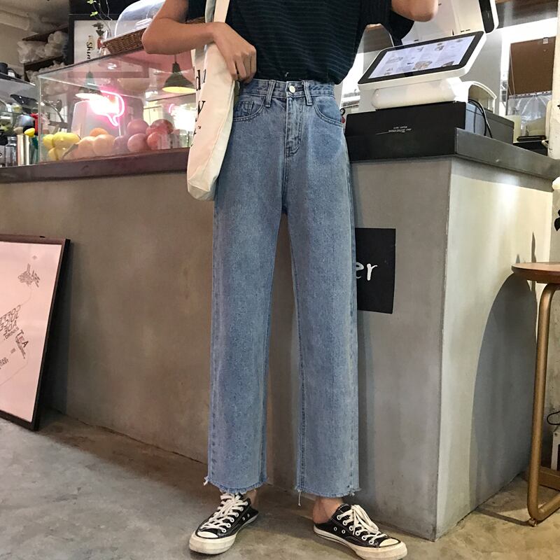 春夏パンツ2020新作ライトカラーファッション擦り切れワイドレッグパンツハイウエストシン学生ナインポイントジーンズ女性 misskkl90734281445