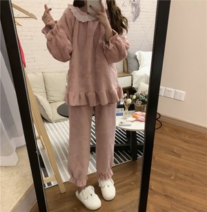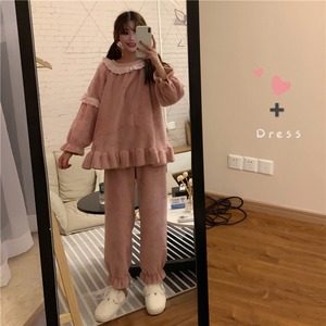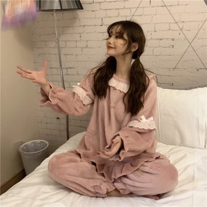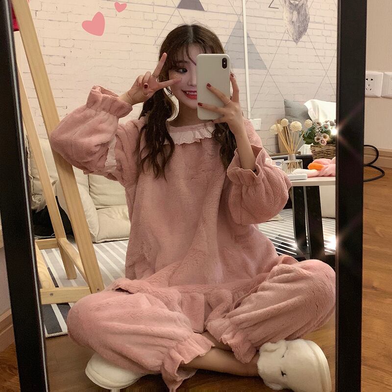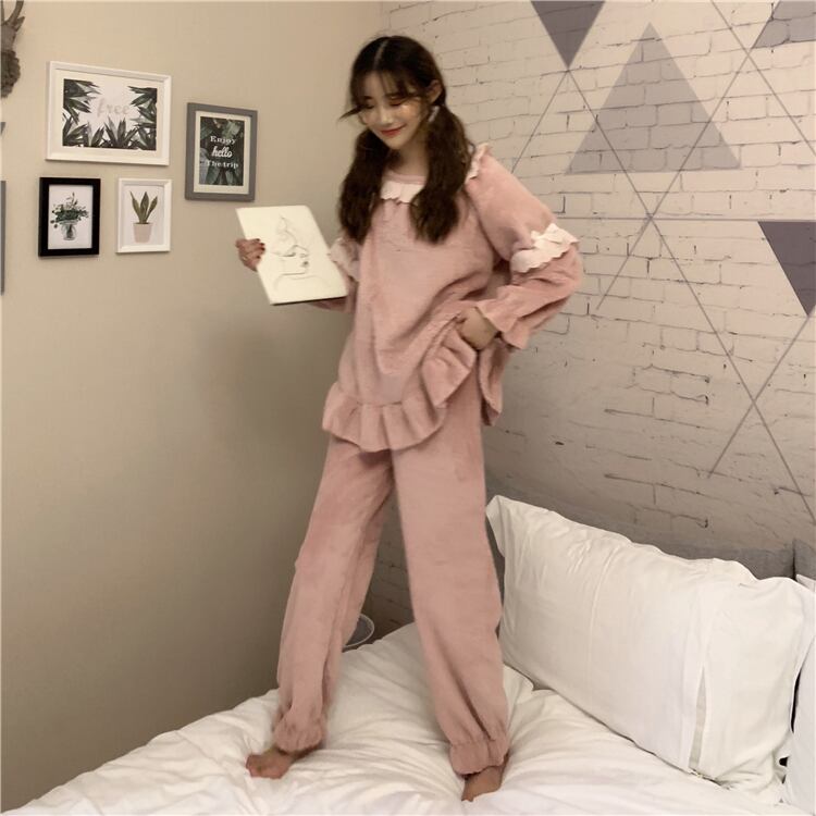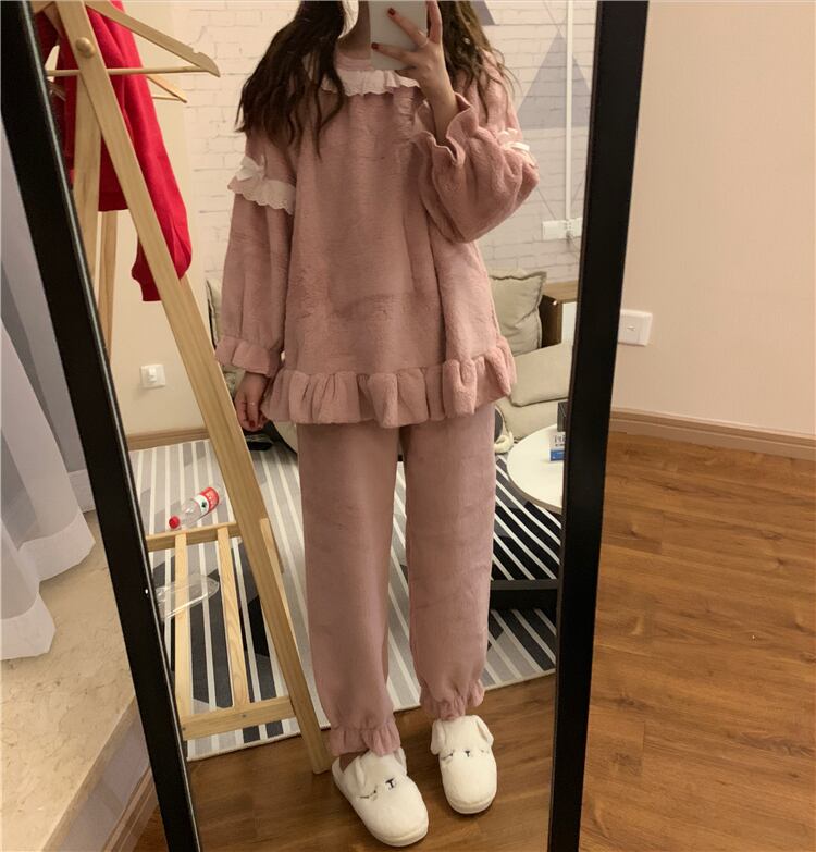 パジャマ女性春秋フランネルコーラルシックニングプラスベルベットキュートネットレッドアウターホームサービスツーピーススーツタイド misskkl16420853345
