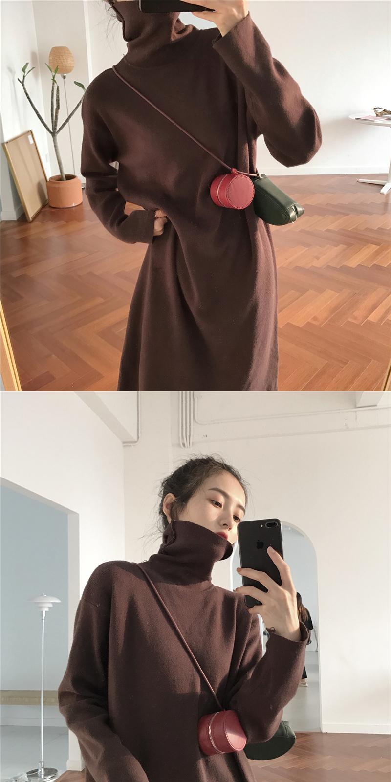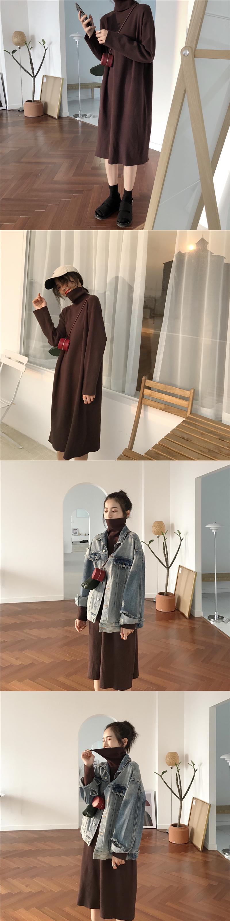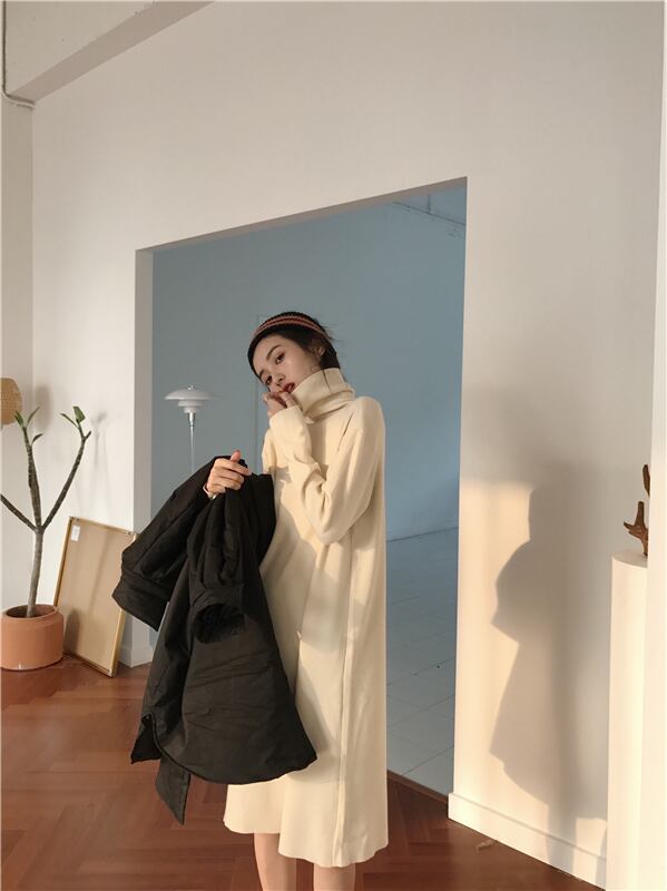 2020年秋冬バージョン新作ルーズミドル丈ハイネックブラック長袖ニットワンピースレディース香港スタイルスカート misskkl54179696950