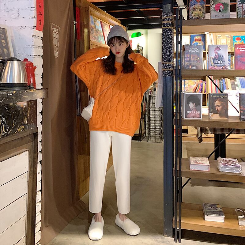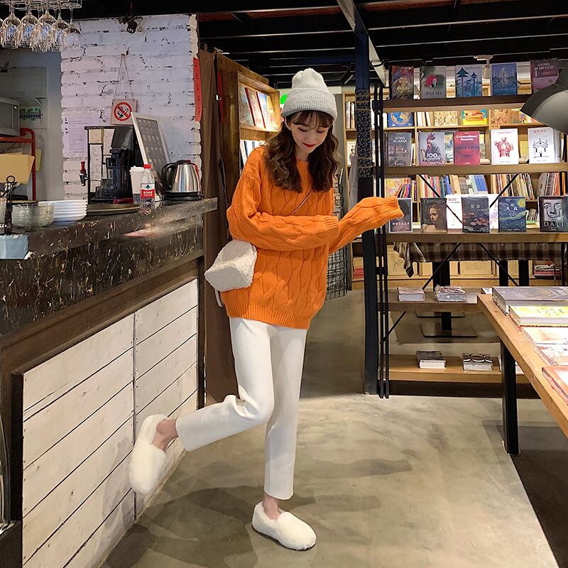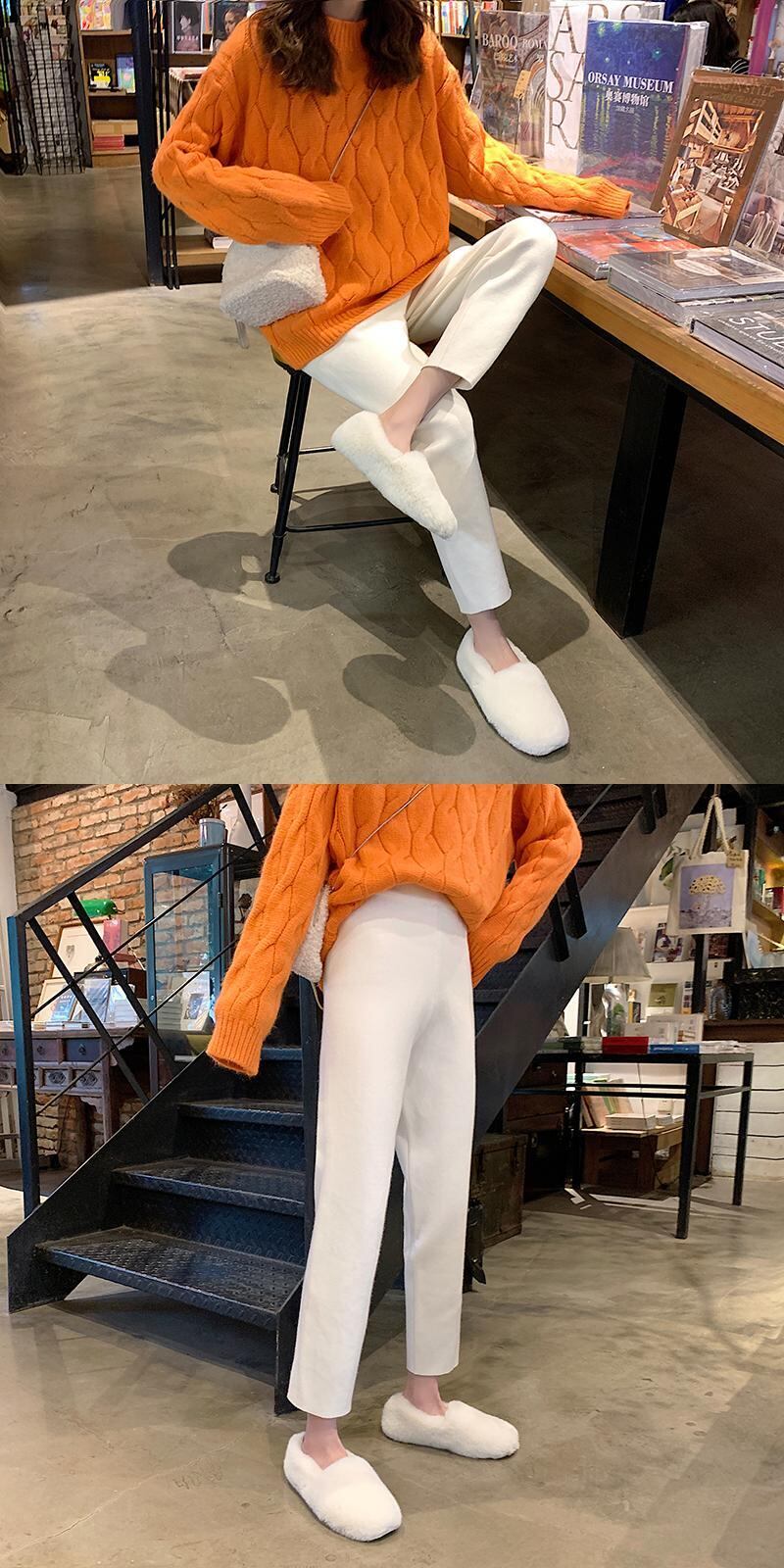 色:オレンジ色のセーターワンピース,白いセーターワンピース,ブラックパンツワンピース,白いズボンのワンピース