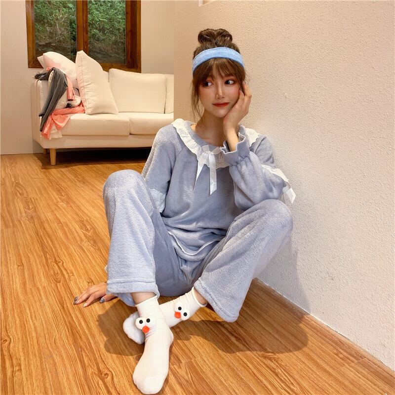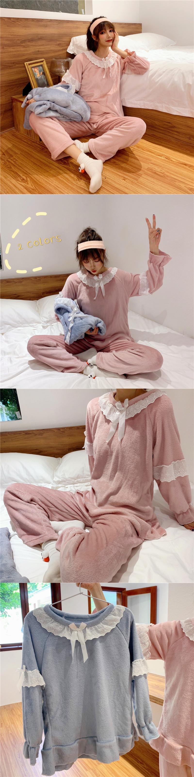 2020年春秋新作スウィートレースのリボンはゆったりとした長袖のパジャマを着て女性のホームサービスに misskkl87927602940