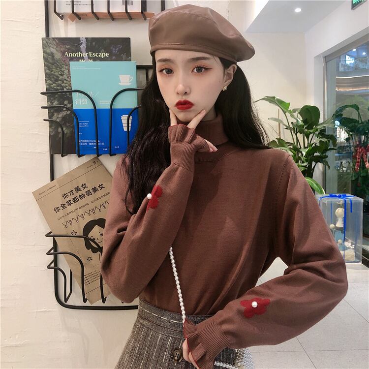 2020年春秋新作ハイネックシックファッションウエスタンスタイルのレディースボトミングシャツ内外着ワイルドネットレッドウォームセータータイド misskkl57615222864