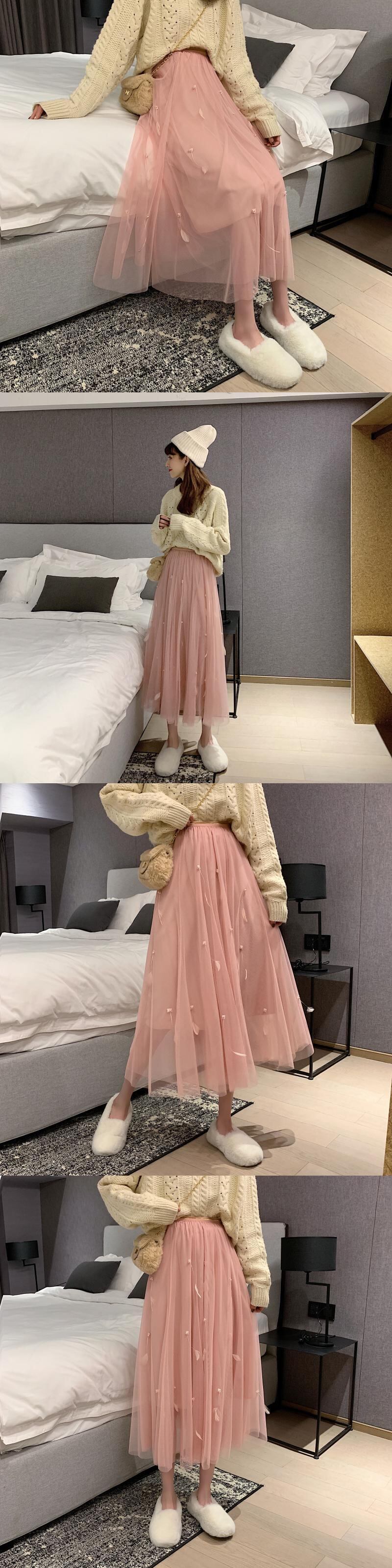 春秋バージョン2020新しいシックなハイウエストスリミングメッシュスカートミドル丈プリーツ大スイングフェアリースカートトレンド misskkl7198588422