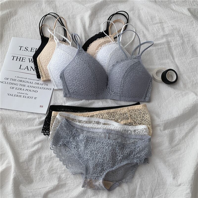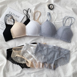スチールリングのない春と秋のバージョン薄い小さな胸が集まったフランスのセクシーなブラレース通気性のあるブラの下着セットの女性 misskkl23295032558