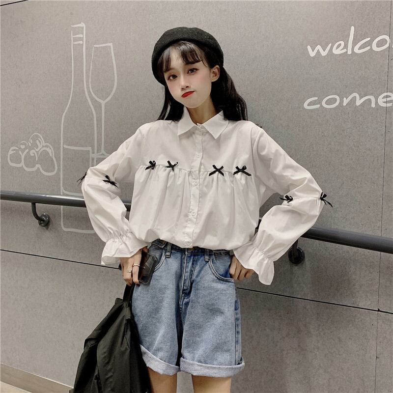 春秋バージョン2020新デザインセンスボウルーズPOLOカラーホワイト長袖シャツジャケット女子学生 misskkl86763667784