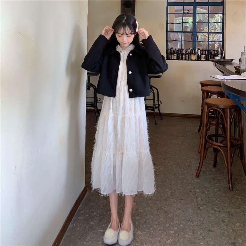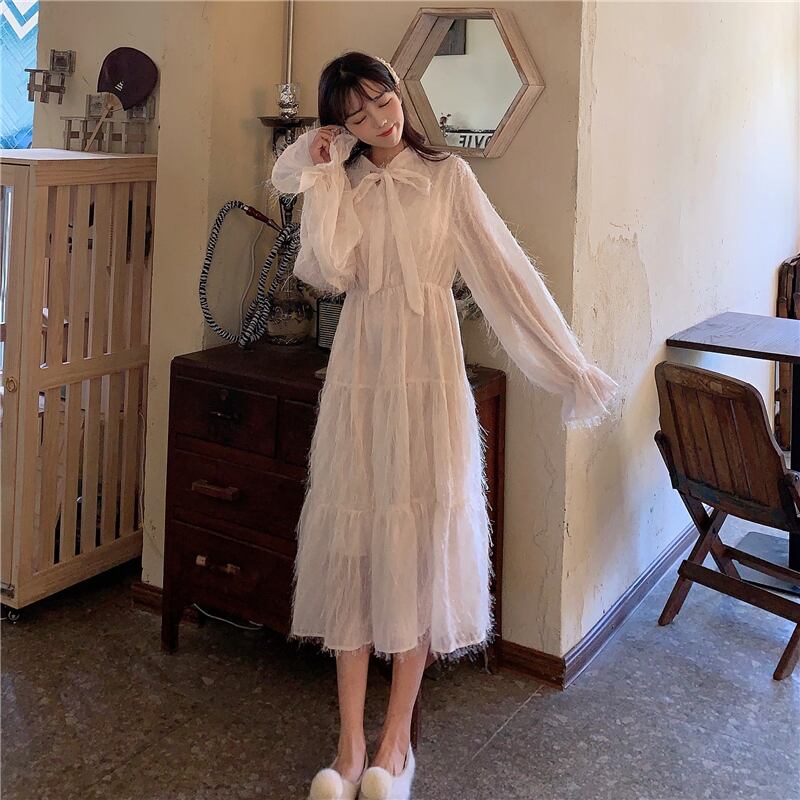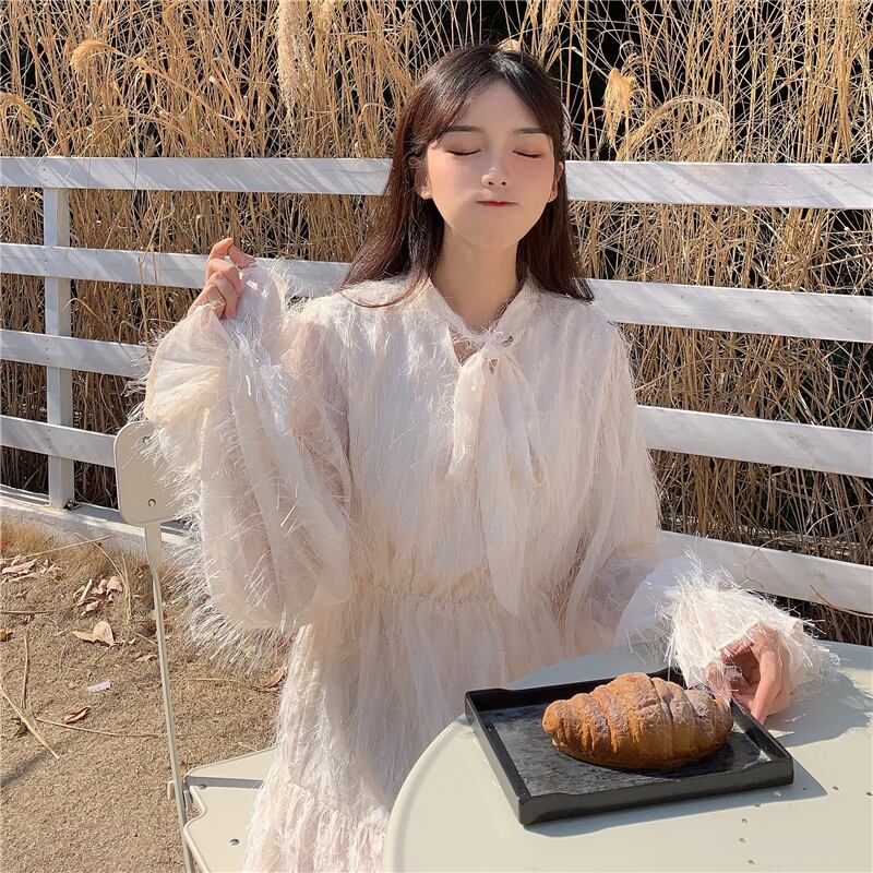 フリンジホーンと長袖の2020年の新しいミドル丈長袖ドレスの春と秋バージョン misskkl34501122381