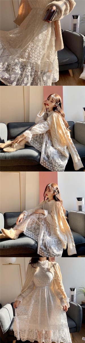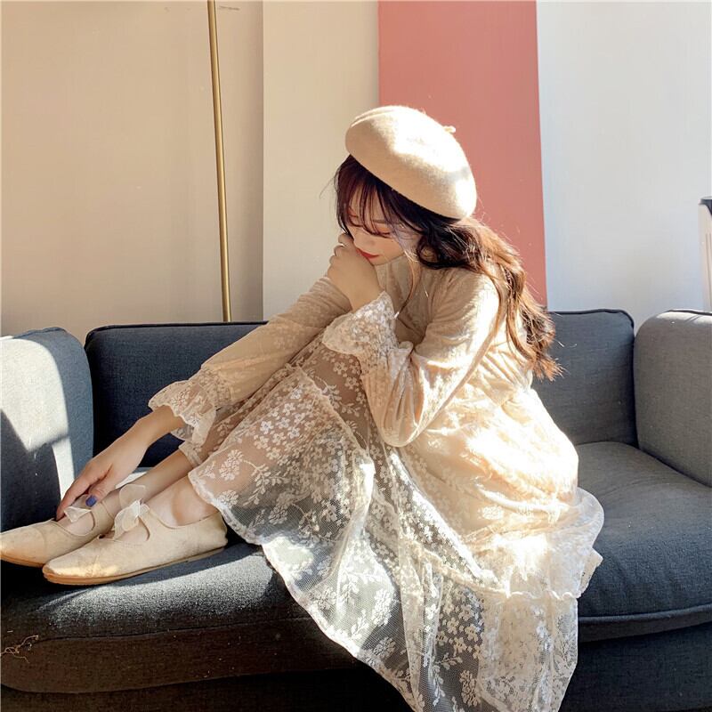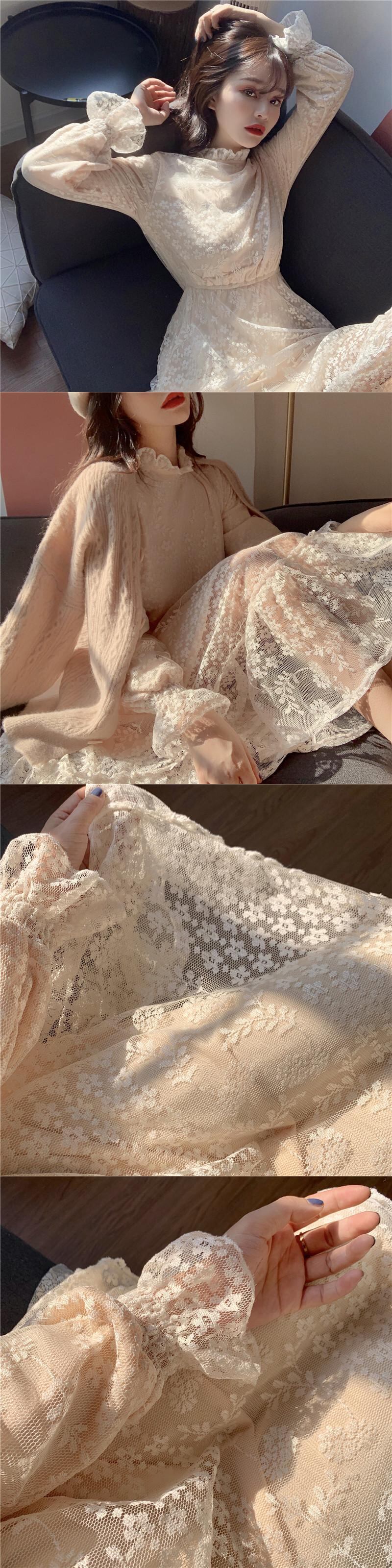 2020年春秋新作スーパーフェアリーインナースタイルミドル丈プラスベルベット太いウエスト長袖レースワンピースレディース misskkl39173298227