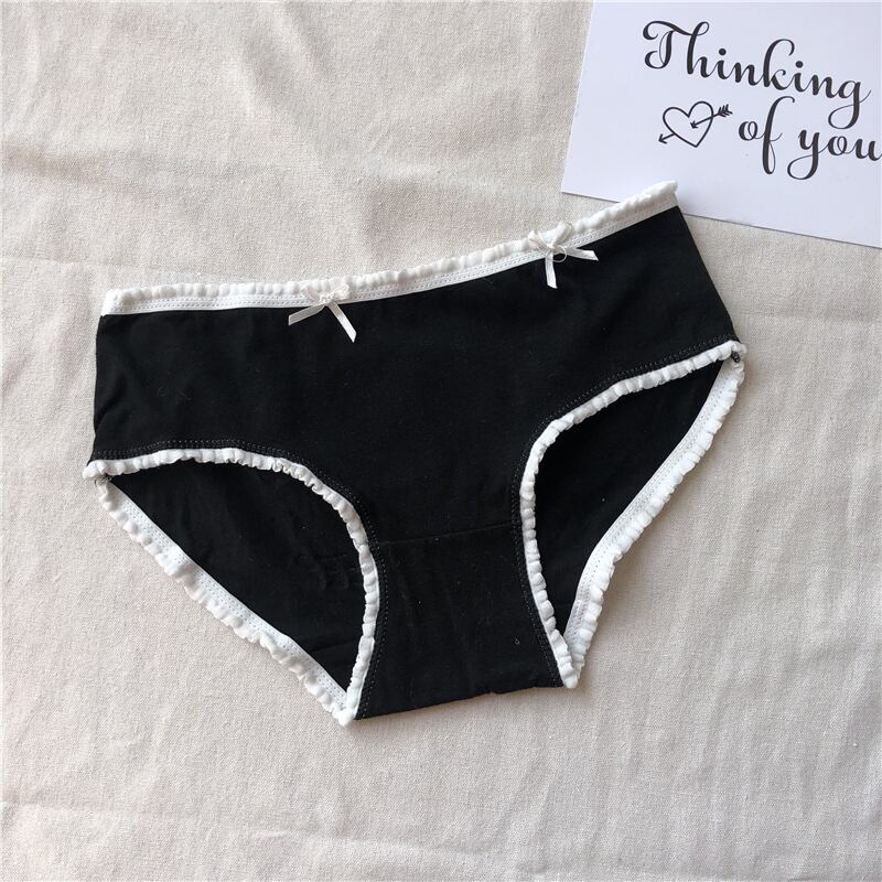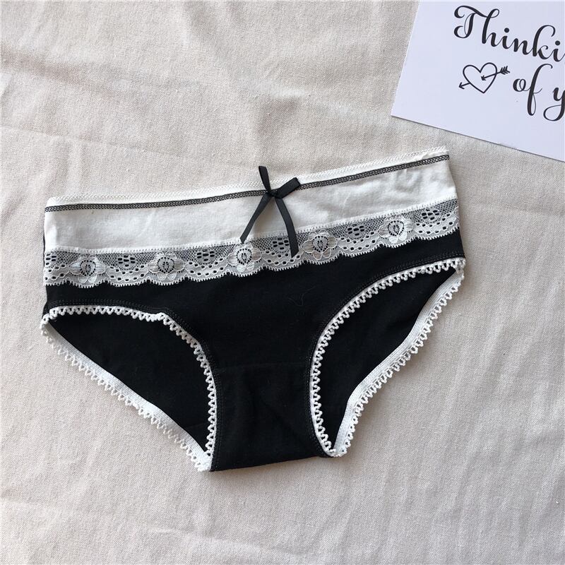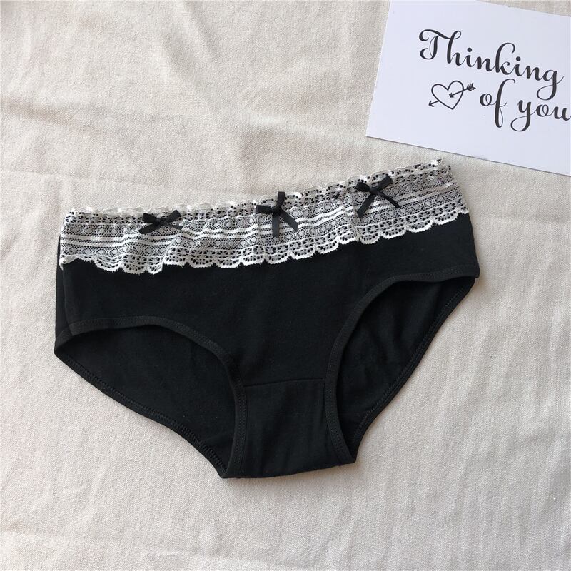 春秋4ピーススタイルの小さなフレッシュボウレースステッチパンティーブラックボトミングミッドウエストブリーフ婦人服 misskkl47948511445