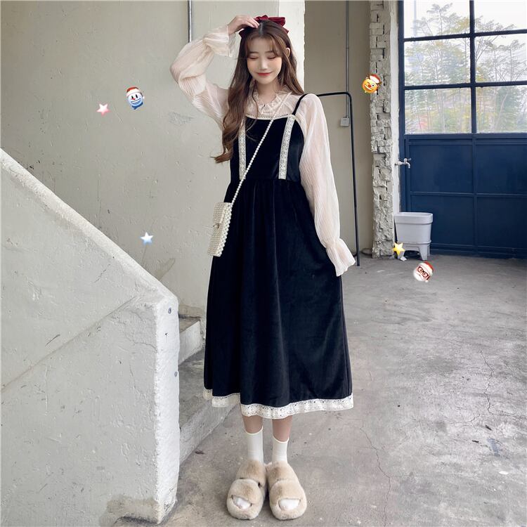 2020年春秋バージョンフレンチウエスタンスタイルミドル丈ベルベットスリングドレスレディーススーツ misskkl88945318205