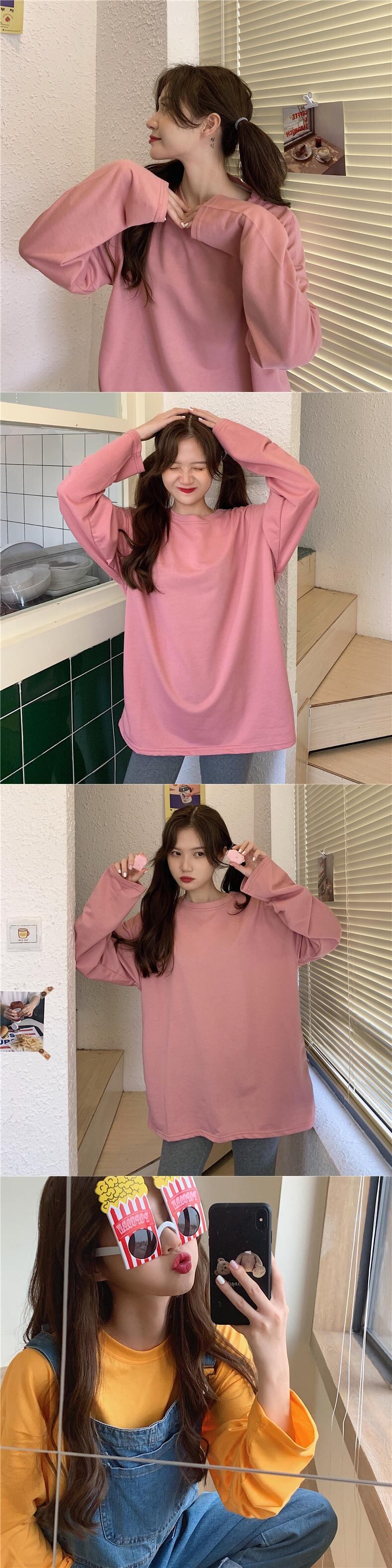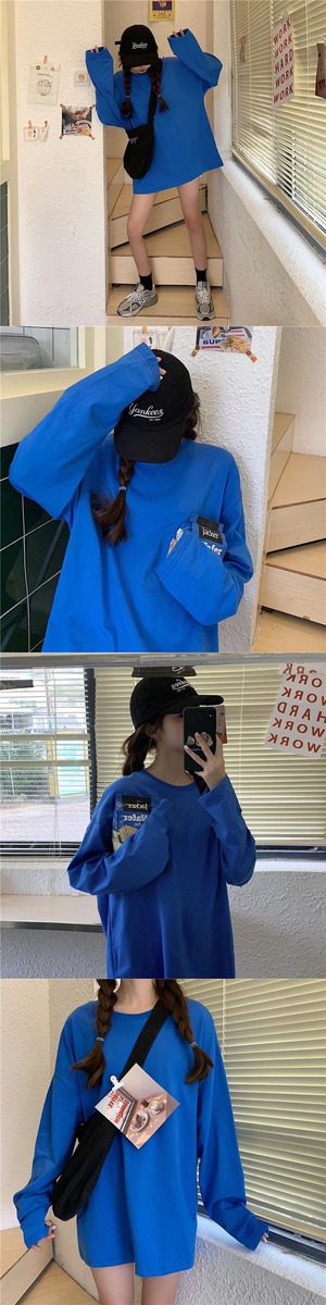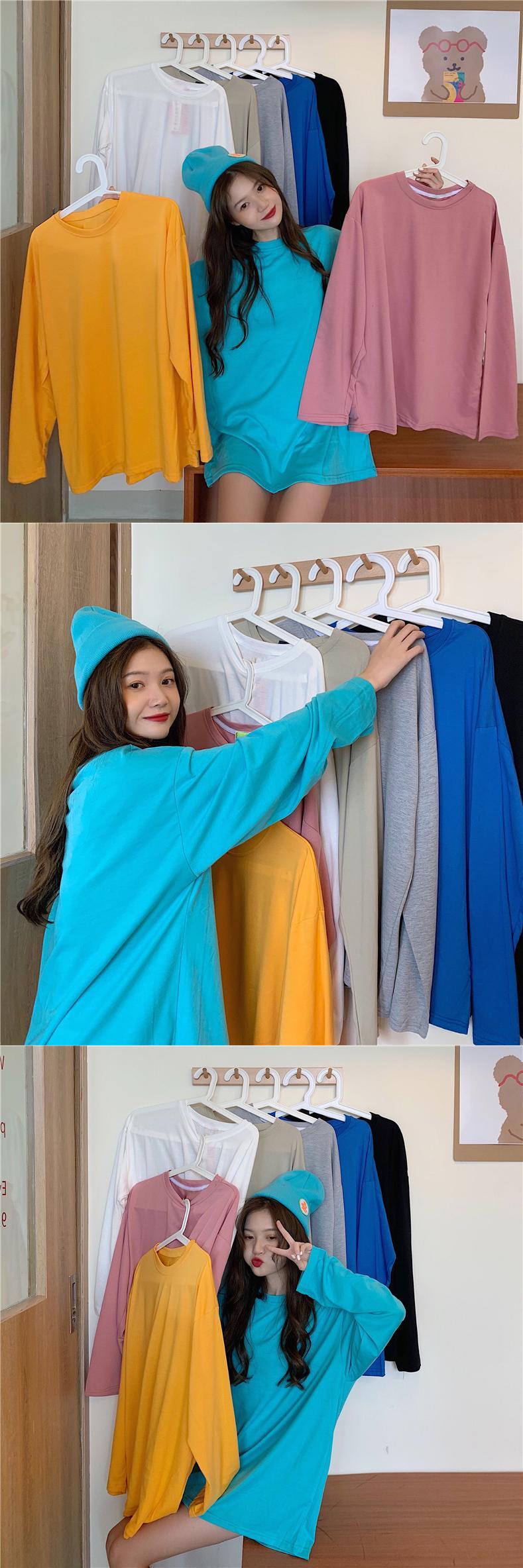 春秋バージョン2020新作ルーズミドル丈スモール無地BFウィンドラウンドネック長袖ボトミングTシャツレディース misskkl93526161224