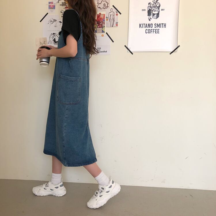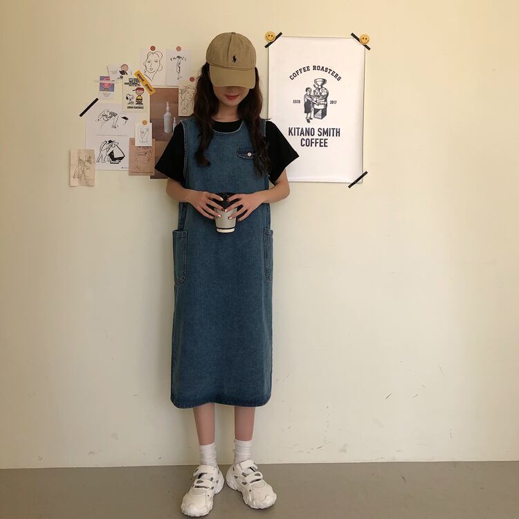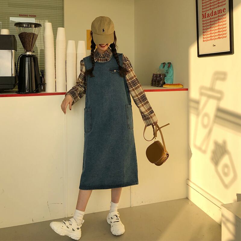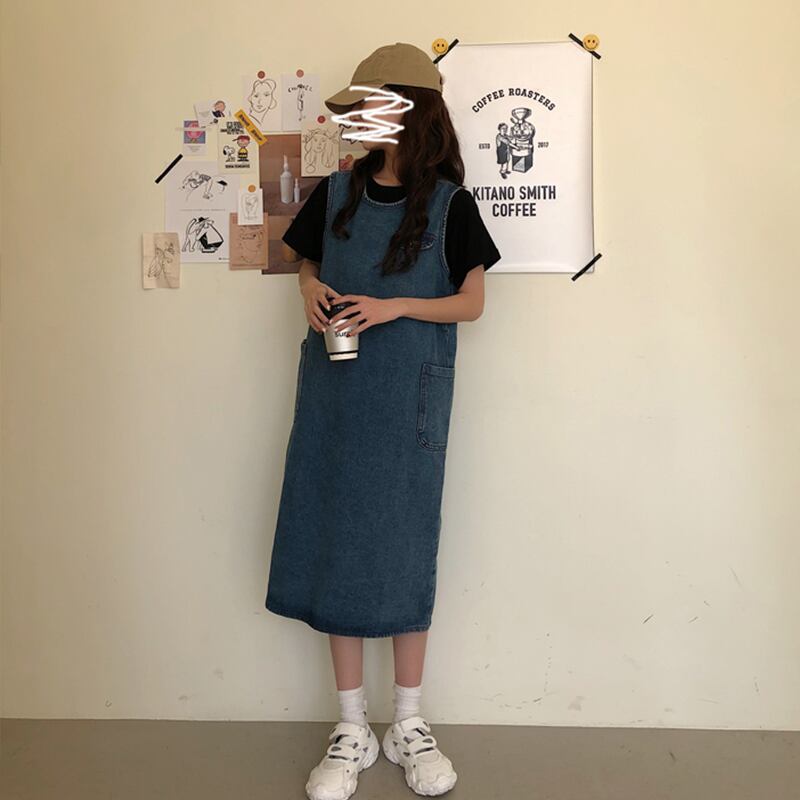 2020年春秋新作レトロルーズミドル丈オーバーザニースチューデントキュートエイジリダクションデニムベストドレスレディース misskkl29863592354