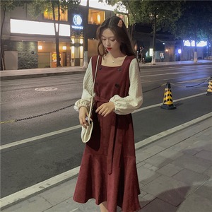 2020年春秋新作婦人服山本風スーパーフェアリーフレンチ初恋レトロレッドフェイクツーピーススカート misskkl2498153365