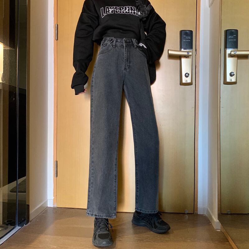 2020年春秋新作ハイウエストスリムパパパンツワイドレッグモップパンツレトロ香港フレーバーウォッシュドジーンズレディース misskkl3699314571
