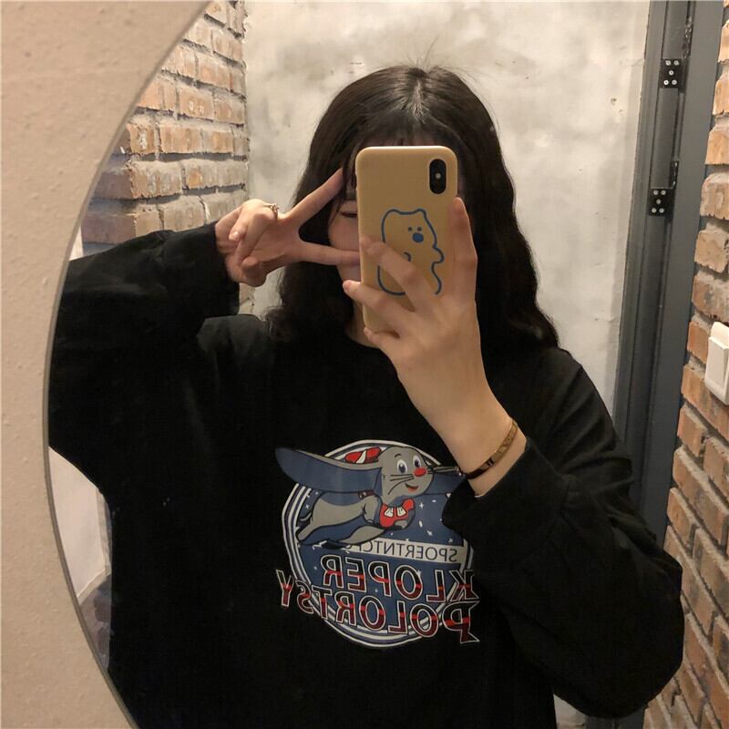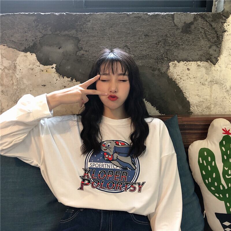 2020年春秋新バージョンのルーズなミドル丈の漫画の手紙の学生がベースの長袖Tシャツの女性のイン misskkl47642153724