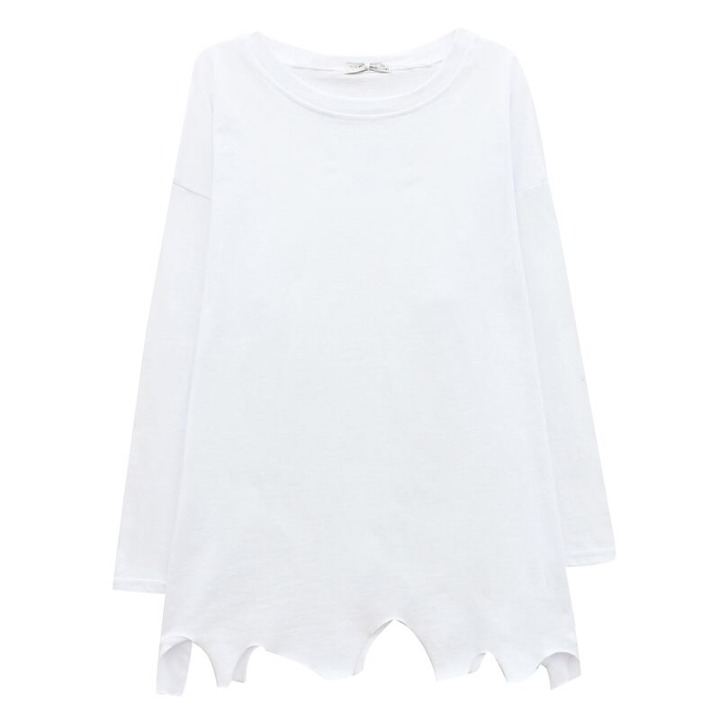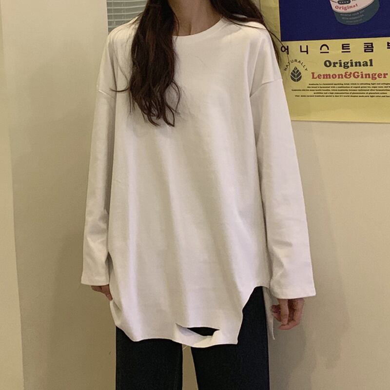怠惰な風の暖かさとベルベットの厚い春と秋のボトミングシャツと白いTシャツ女性BF穴不規則なインシャツ misskkl15678023240