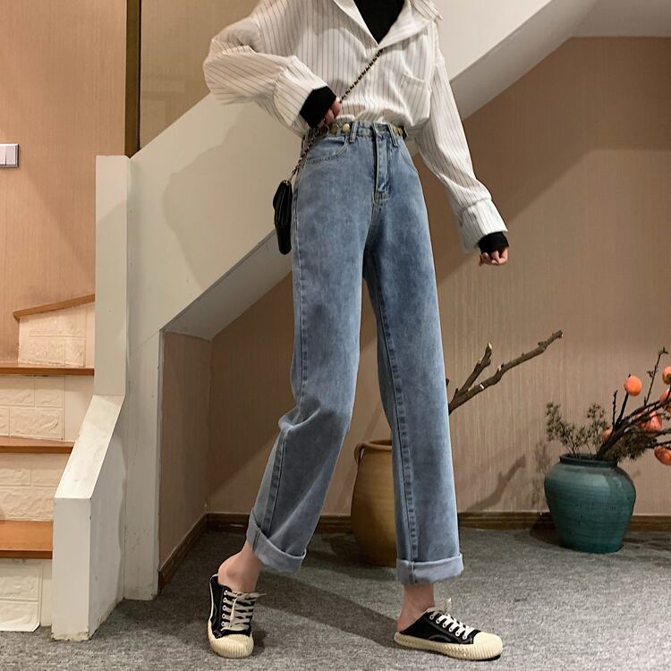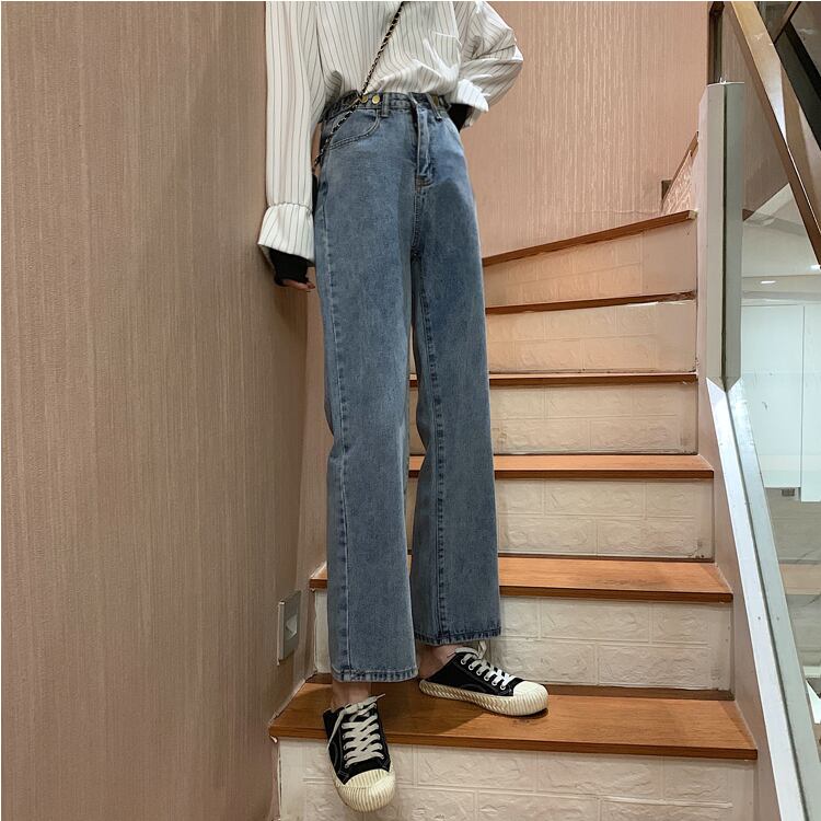 2020年春秋バージョンの新しいネットレッドハイウエストスリミングライトカラーワイドレッグモップパンツ学生オールマッチジーンズ女性 misskkl45482183878