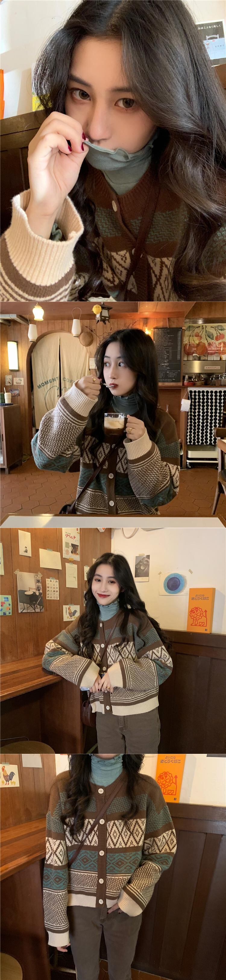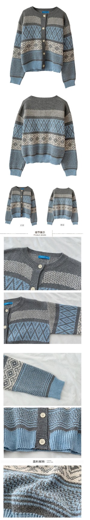 2020年春秋新入生森ルーズショートニットジャカード厚手長袖セータージャケットレディースイン misskkl73254877059