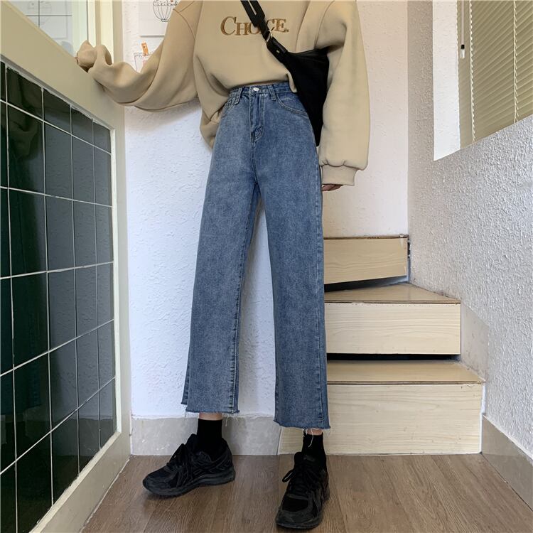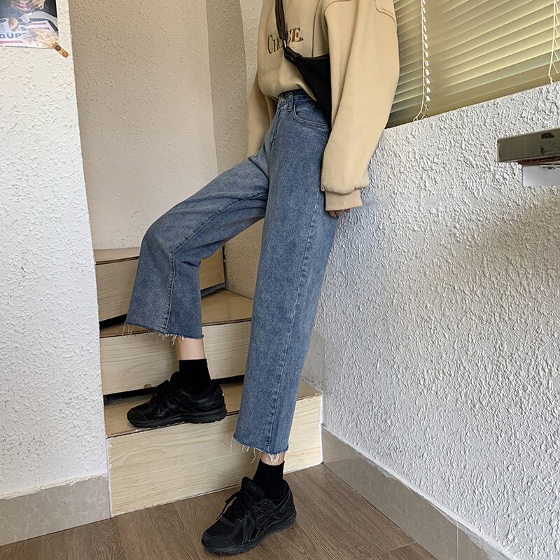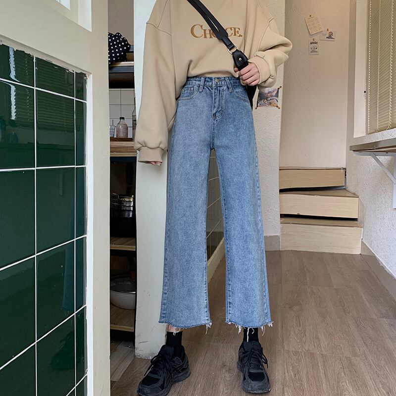 2020年春秋ハイウエストスリミングバイタルーズワイドレッグパンツファッションナインポイントパンツジーンズ女性イン misskkl2887645533