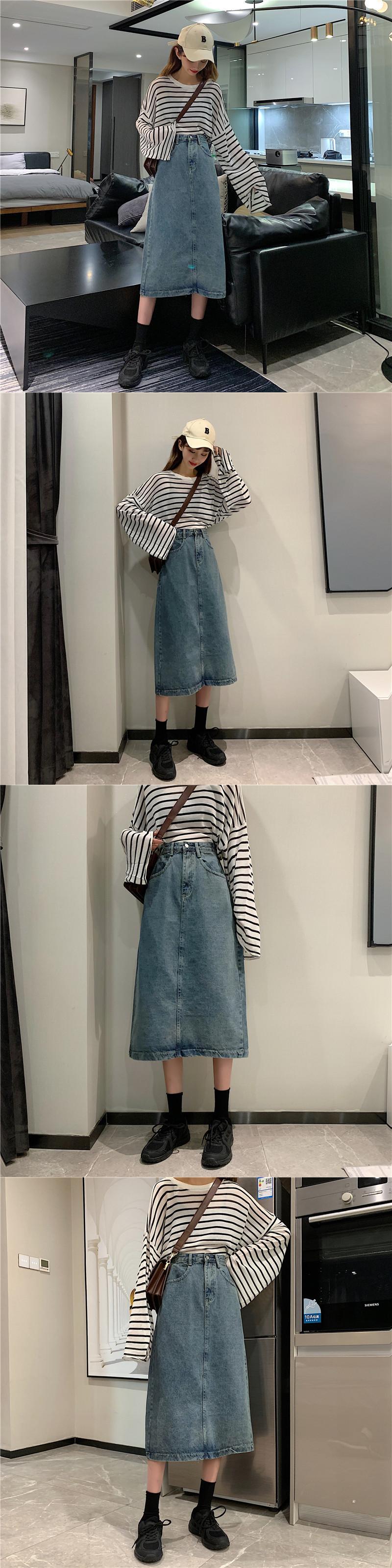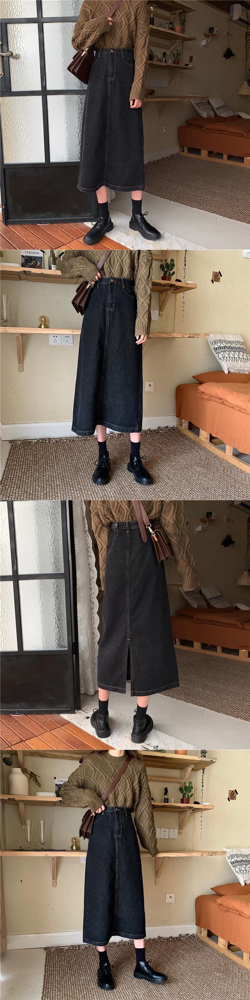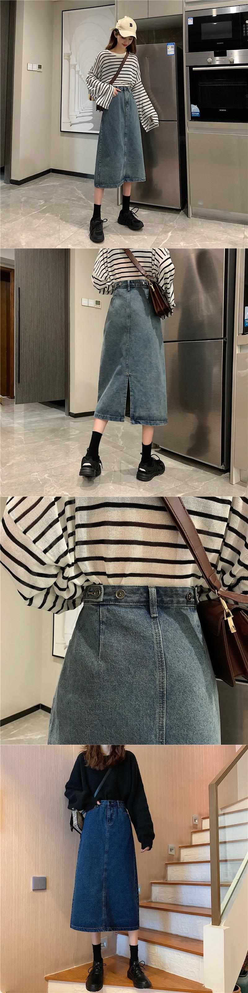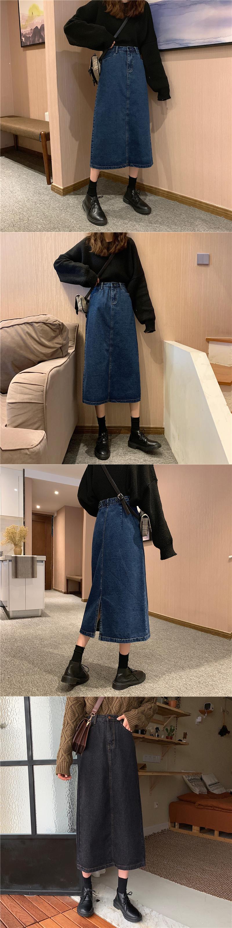2020年春秋新作レトロ香港スタイルミドル丈ハイウエスト痩身学生の年齢を減らすスプリットデニムスカートの女性 misskkl20946011075