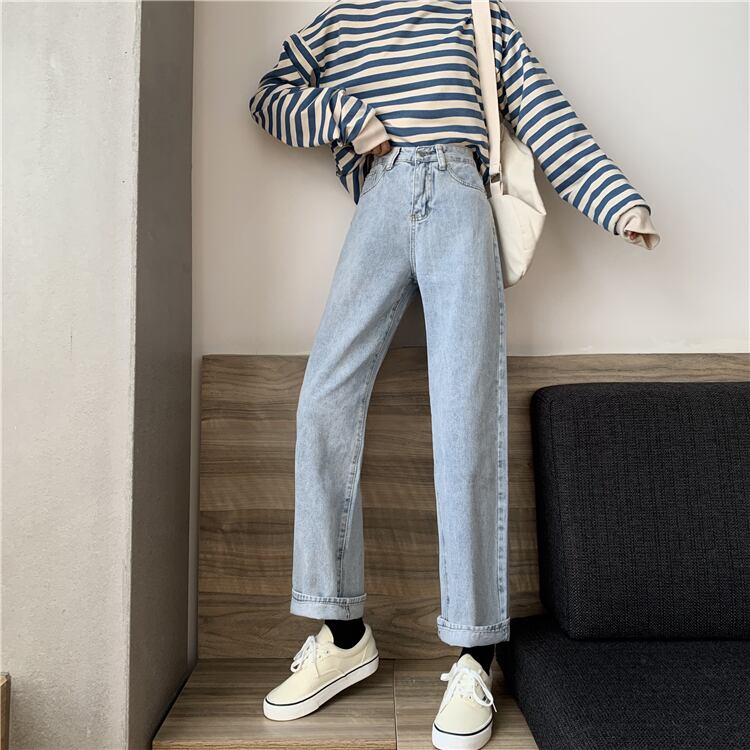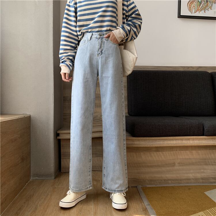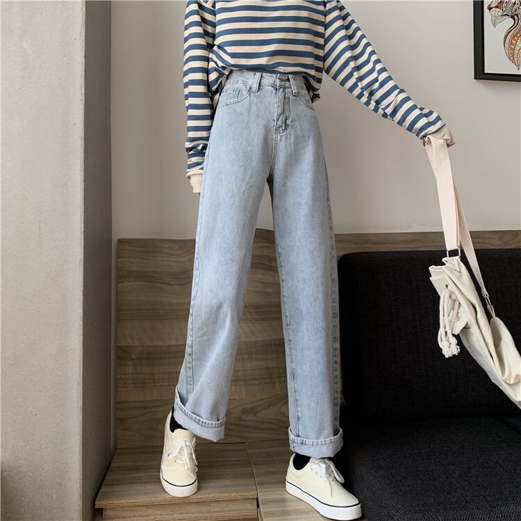 淡い色のジーンズレディースルーズハイウエストは細くて背の高いワイドレッグパパ2020新入生ストレートシックパンツ misskkl63814060939