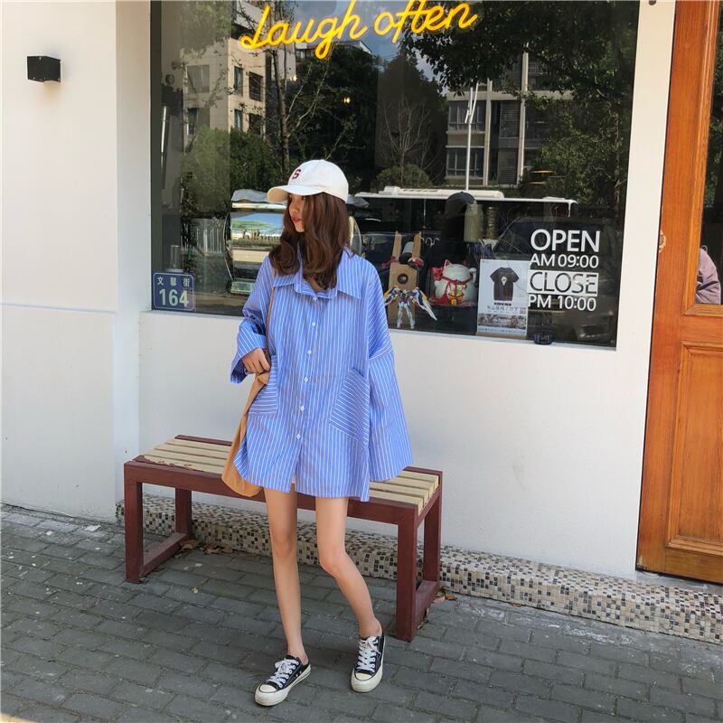 2020年春の新バージョンのBFウィンドルーズミドル丈シャツシンストライプ長袖日焼け止めシャツジャケット女性 misskkl20604183197