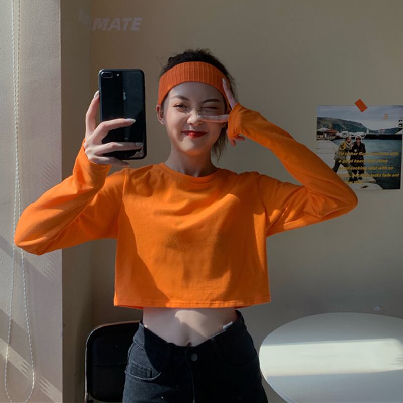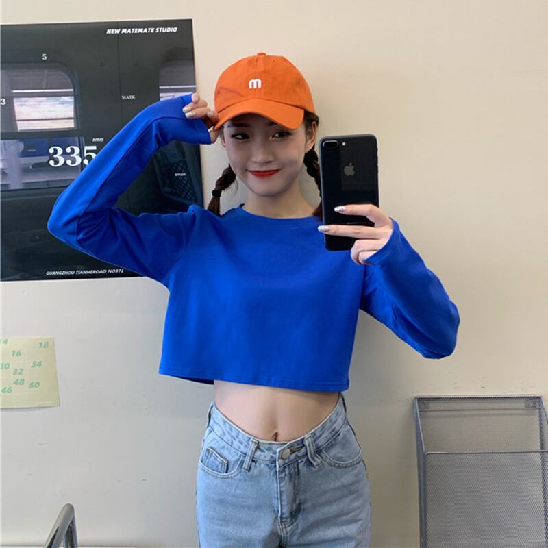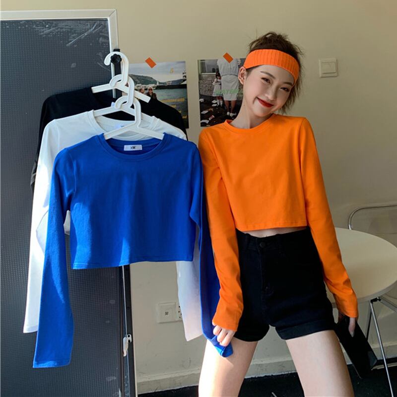 春秋バージョン2020新ラウンドネックショートクロップドおへそスモールルーズ長袖ボトミングTシャツ女子学生トップ misskkl87239577238