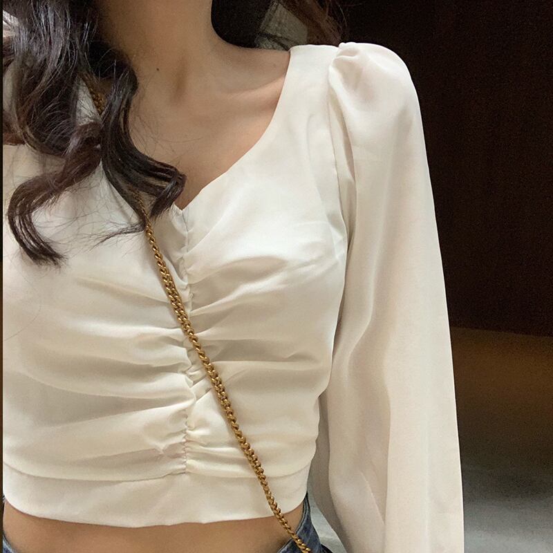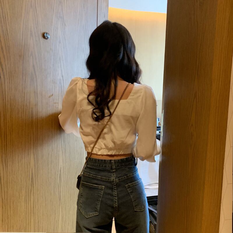 2020年春秋バージョン新デザインセンス遊び心おへそショートウエスト薄パフスリーブ長袖シャツ女性 misskkl13684458153